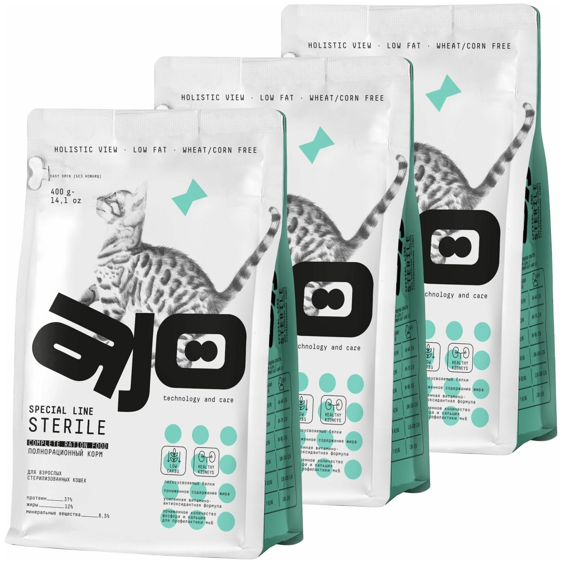Корм для кошек сухой AJO / Айо Cat Sterile для взрослых стерилизованных животных, гранулы 400г / кошачья еда для ежедневного кормления