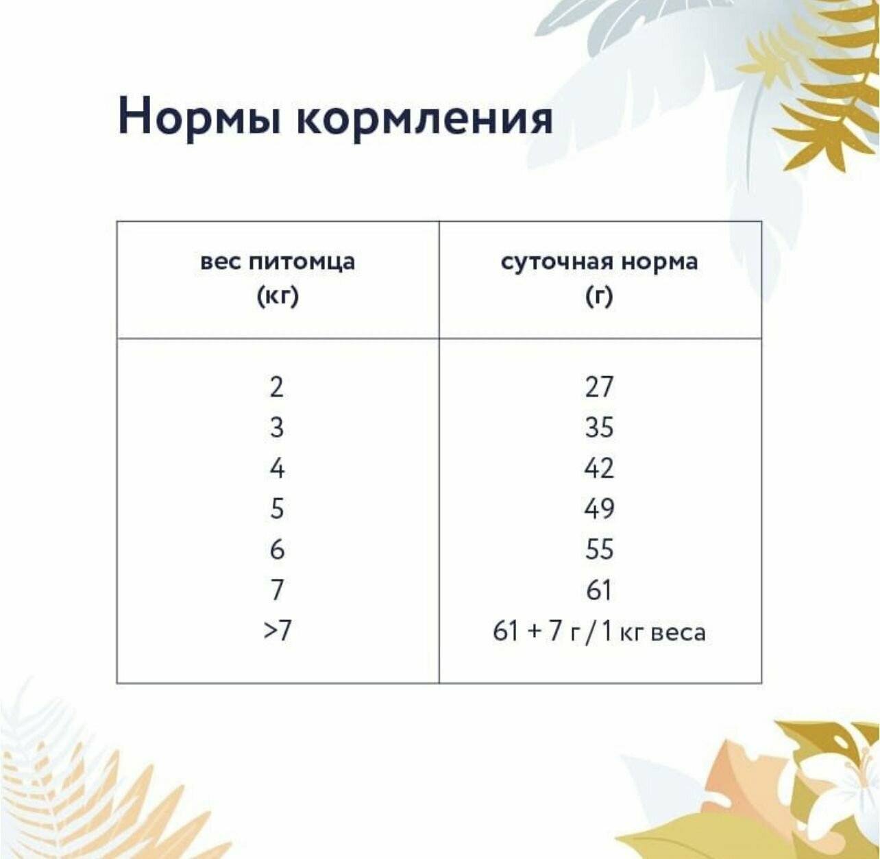 | Дозировка | В зависимости от активности и аппетита вашего питомца |