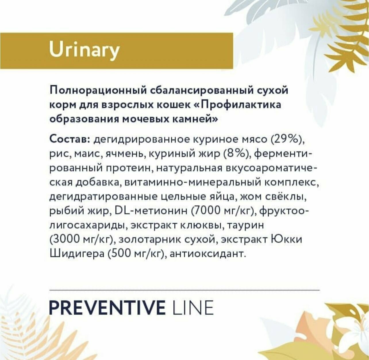 Сухой корм для кошек "Профилактика образования мочевых камней" Preventive Line urinary, FLORIDA / Флорида, 1,5 кг.