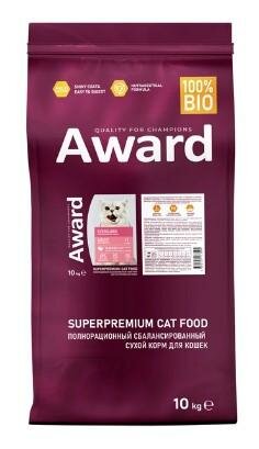 AWARD STERILIZED для взрослых кастрированных котов и стерилизованных кошек с индейкой и курицей 10 кг