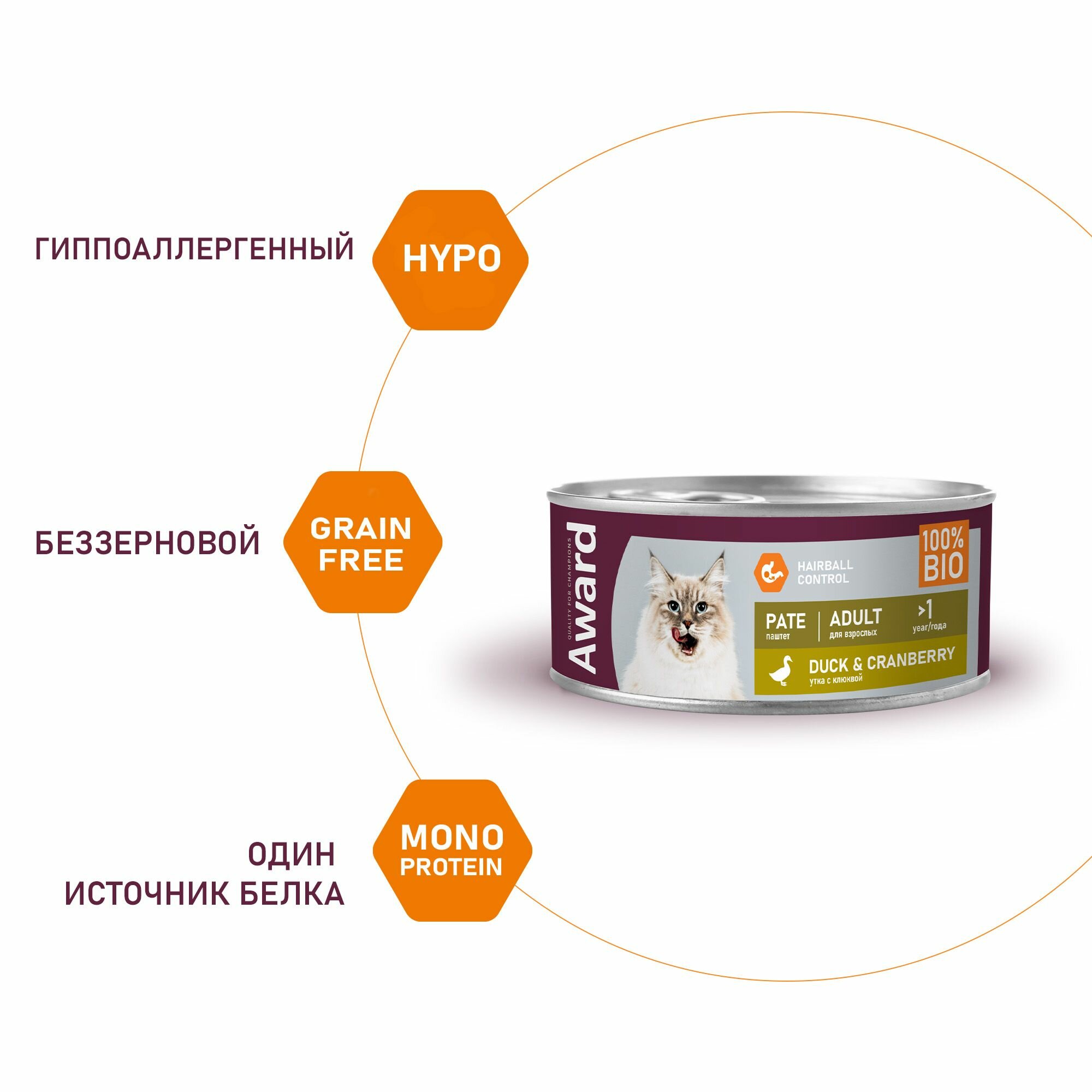 Влажный корм AWARD для взрослых кошек паштет из утки с клюквой 100г х 3шт