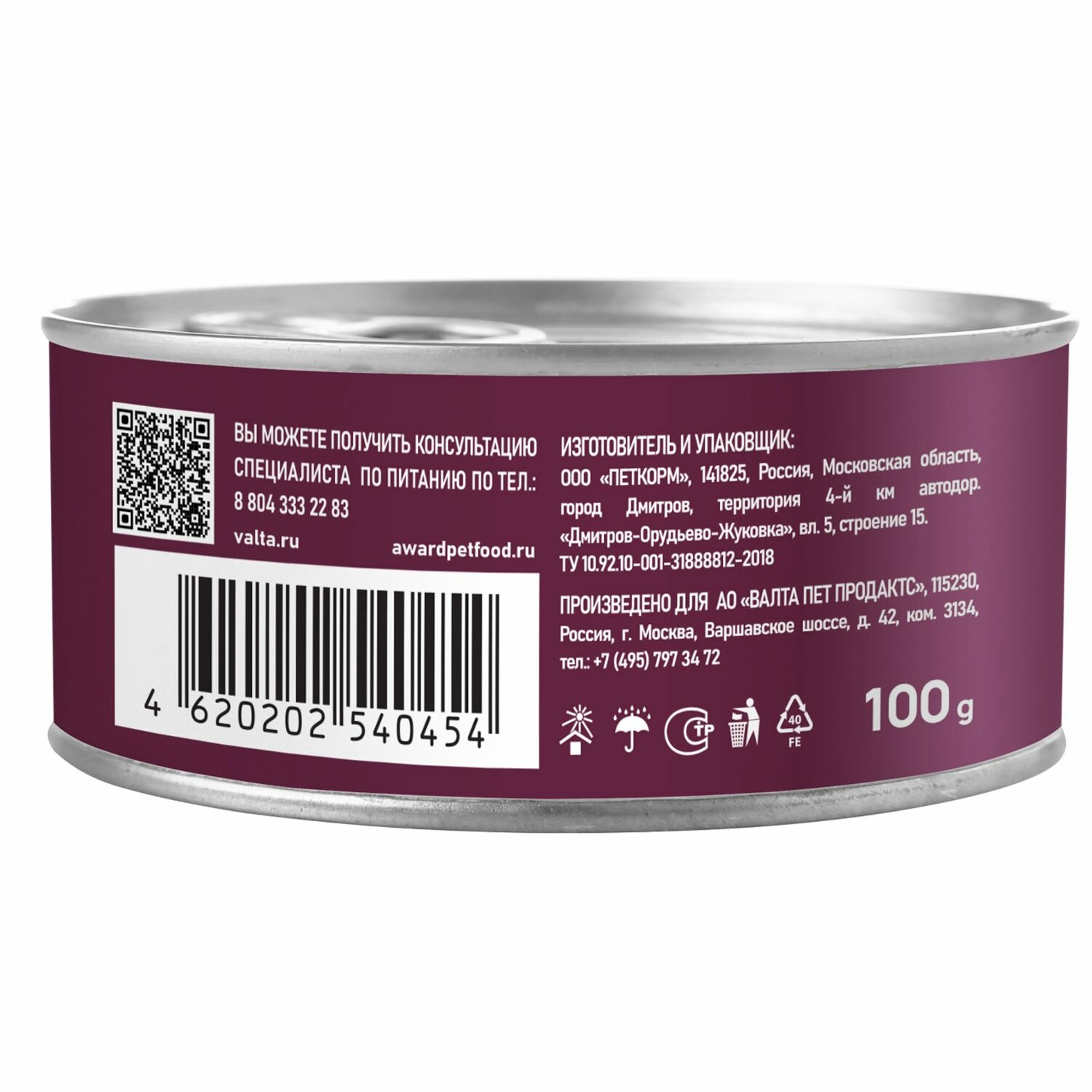 Влажный корм AWARD для кошек паштет из утки с клюквой 100г * 16 шт