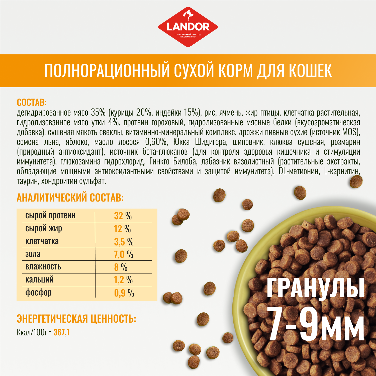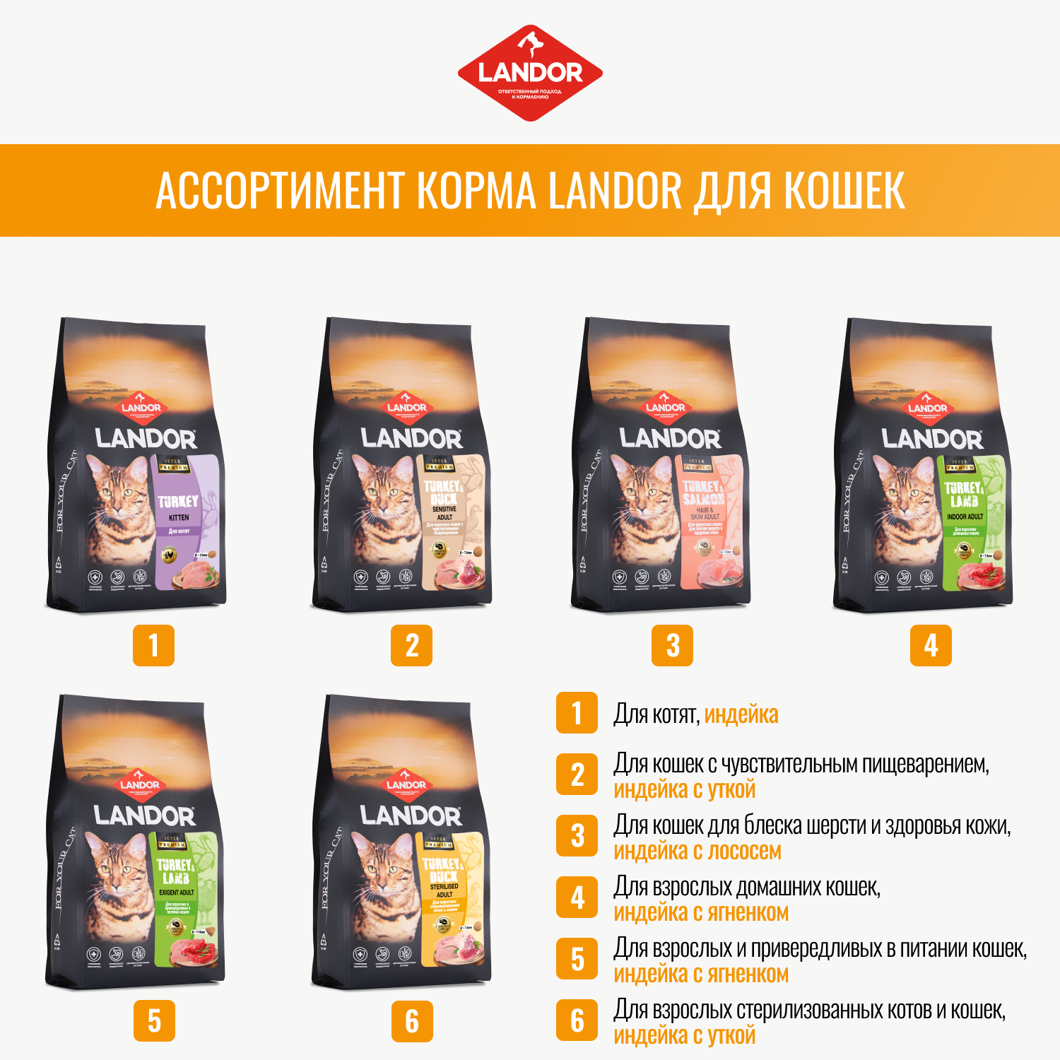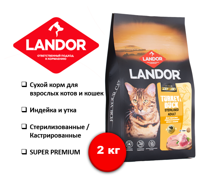 Сухой корм LANDOR для стерилизованных кошек индейка и утка 2кг / Ландор