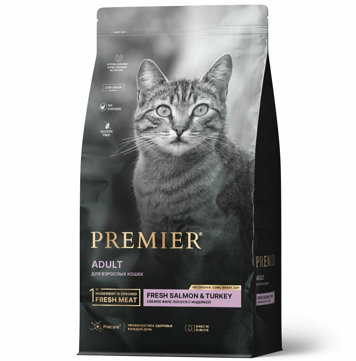 Premier Cat Salmon & Turkey ADULT для взрослых кошек, свежее филе лосося с индейкой 2кг.