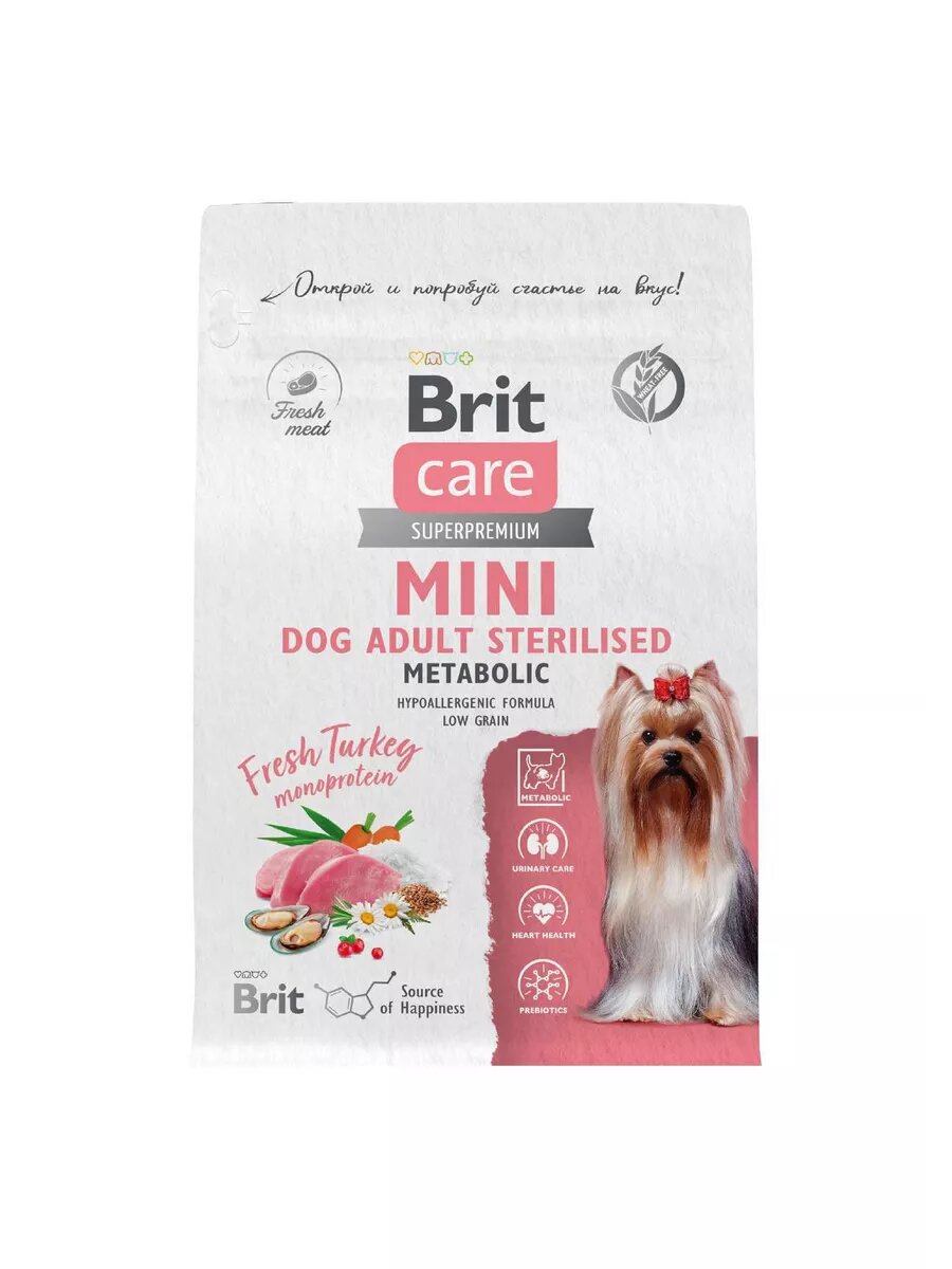 Сухой корм собак мелких пород с индейкой "Adult Sterilised. Metabolic", BRIT CARE Mini 0.4кг