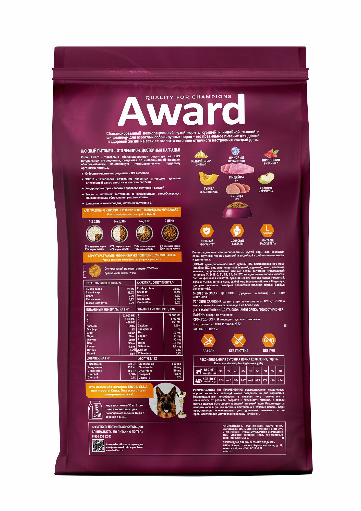 Ниже Вы можете прочитать отзывы на AWARD ADULT LARGE для взрослых собак крупных пород с курицей и индейкой 12 кг, ознакомится с подробными характеристиками, посмотреть интересные обзоры и фотографии на AWARD ADULT LARGE для взрослых собак крупных пород с курицей и индейкой 12 кг.