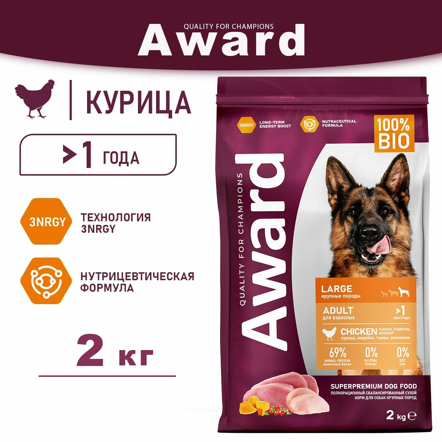 AWARD сухой корм для взрослых собак крупных пород, с курицей, индейкой, тыквой и шиповником - 2 кг