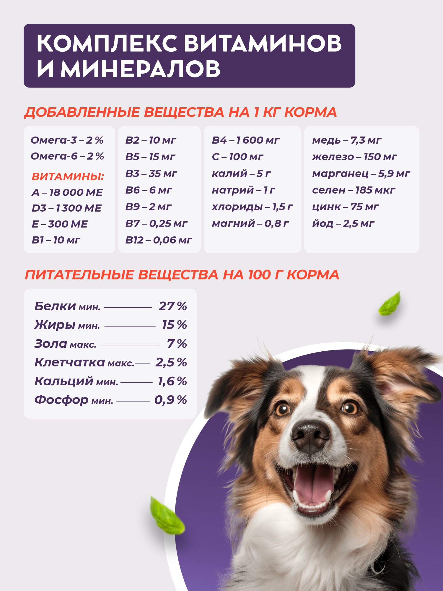 | Особые потребности | беззерновой / для активных животных |