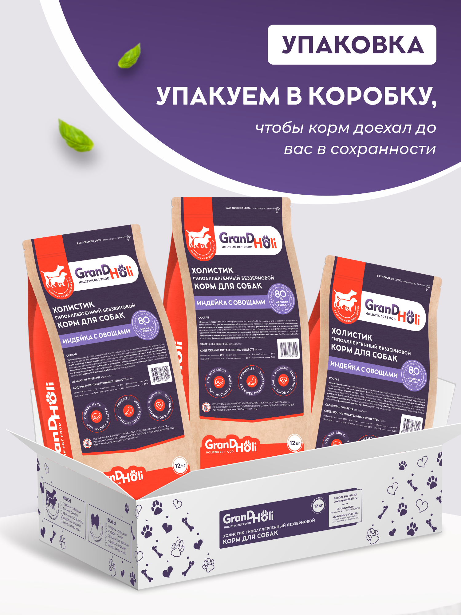 Купить Сухой корм для собак крупных и средних пород GRANDHOLI, "Индейка с овощами" 12кг