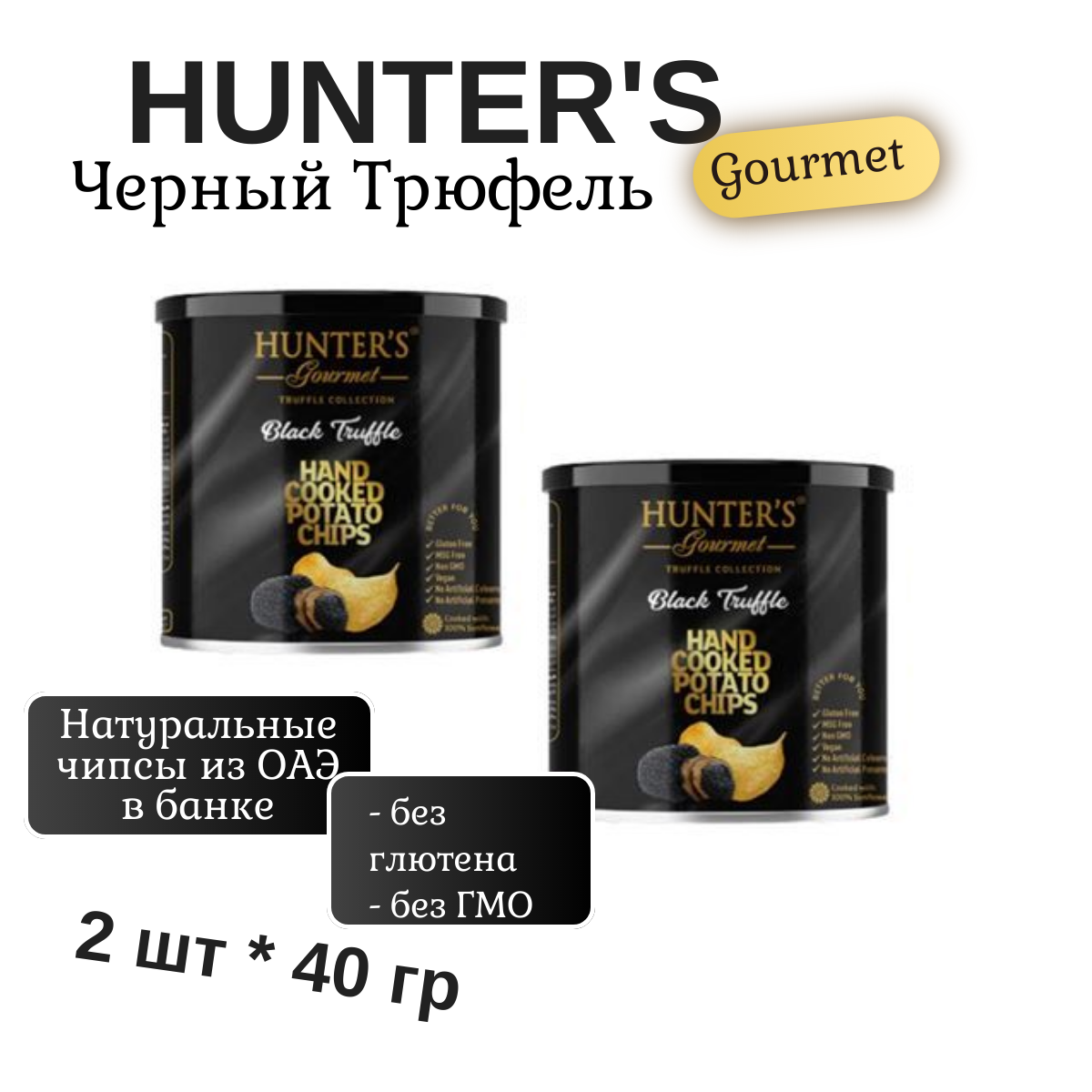 Купить Чипсы картофельные натуральные Hunter's Gourmet Black Truffle (Хантерс Черный трюфель) с трюфелем, 2 шт по 40 гр