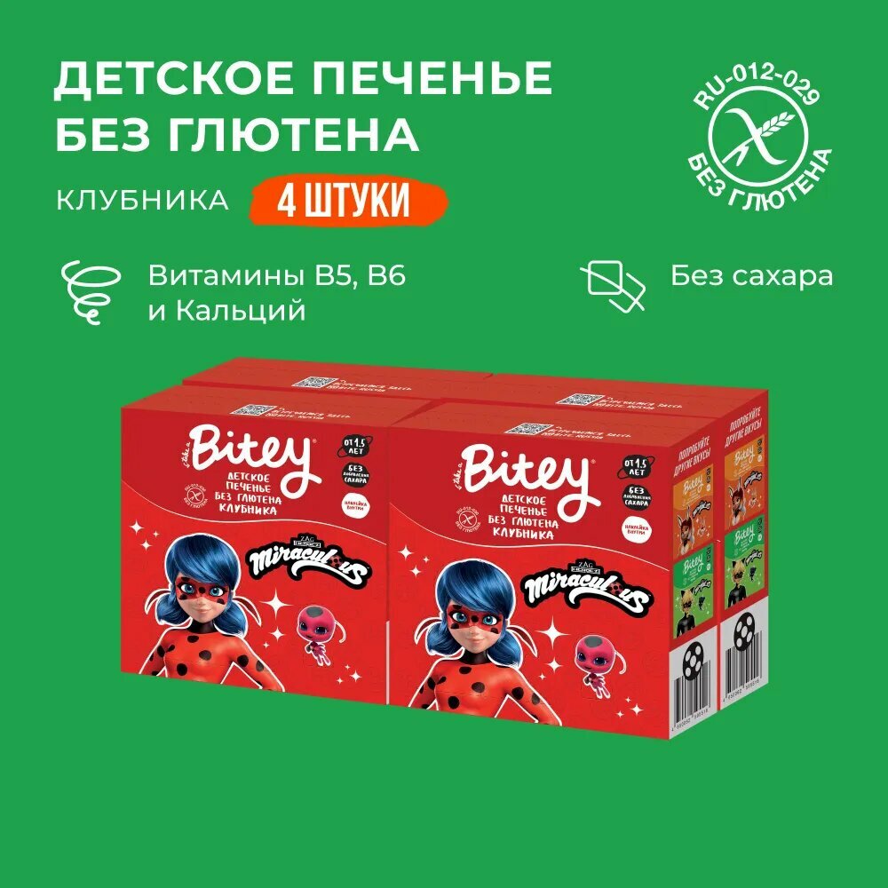Печенье детское без сахара и глютена Take a Bitey / Bite, Клубника, 4 шт по 125 гр
