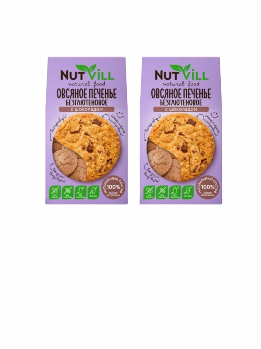 Печенье овсяное безглютеновое "С шоколадом" без сахара Nutvill, 85 гр (2 шт. в наборе)
