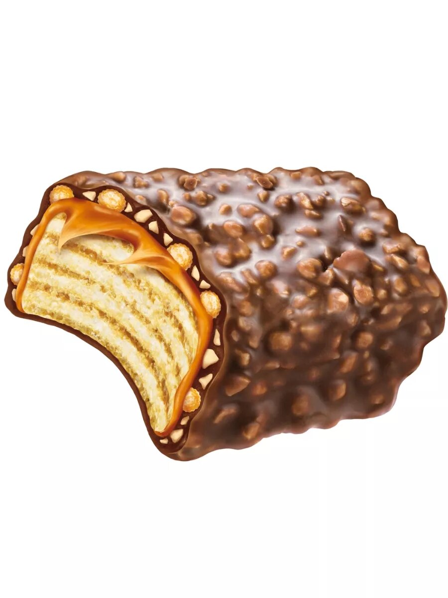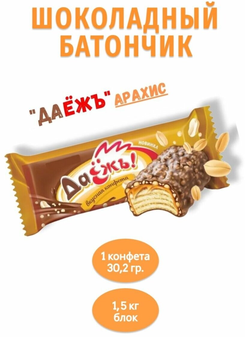 Конфеты вафельные Даёжъ с карамелью, арахисом и криспи, в шоколаде, коробка 1.5 кг