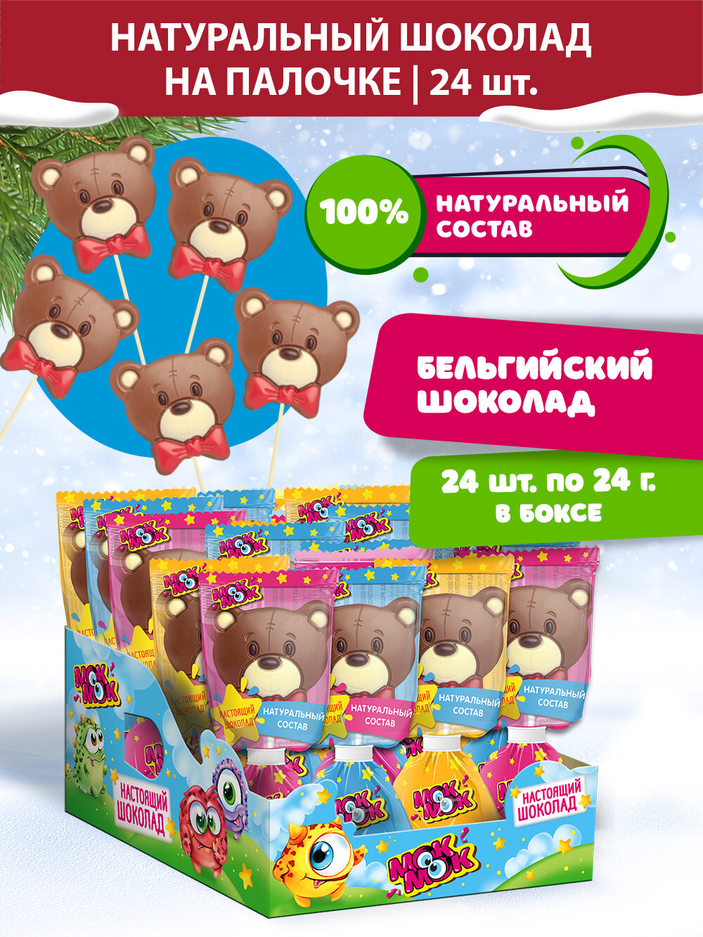 Купить Шоколад фигурный Мок Мок Мишка детский молочный на палочке, 24 шт по 24 г