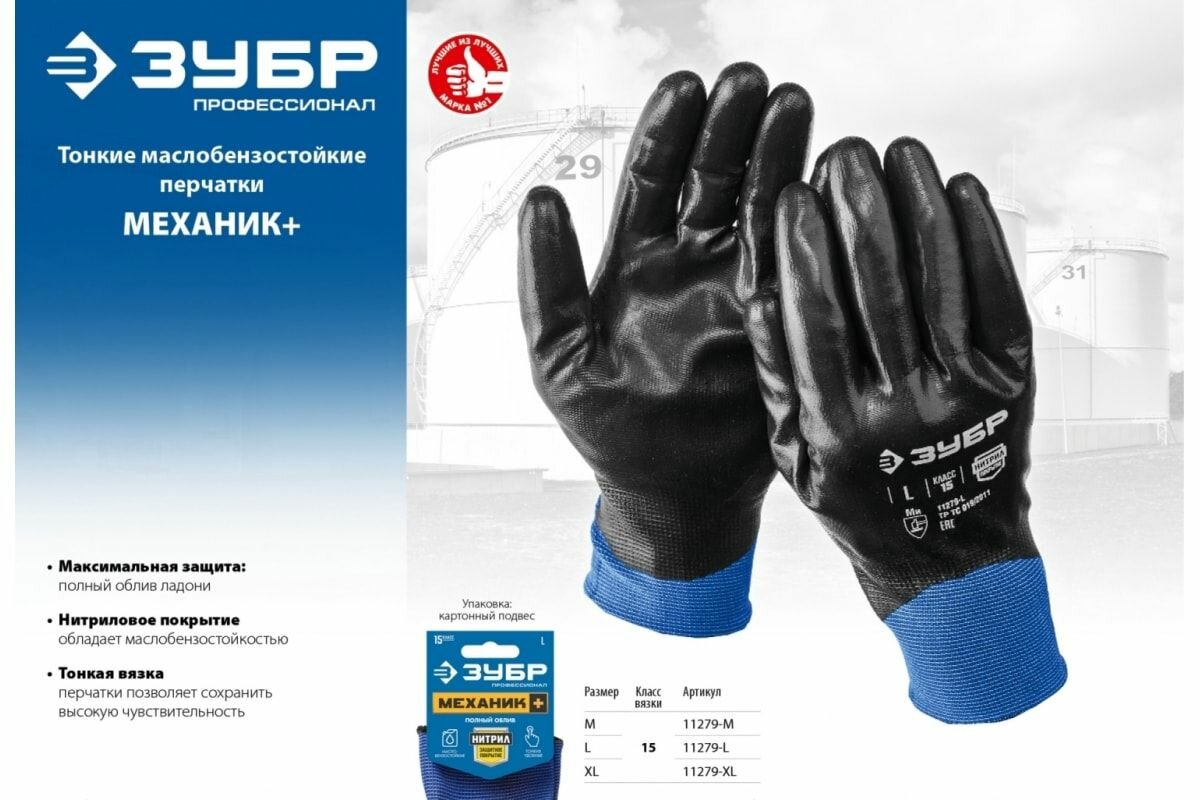 Купить Маслобензостойкие перчатки ЗУБР Механик+ размер L, полный облив, тонкие, 2 пары