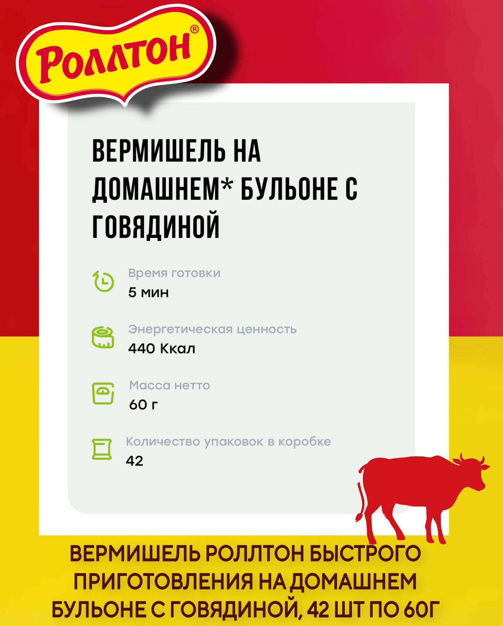 Вермишель роллтон На домашнем бульоне с говядиной, 60гр 42шт интересное: