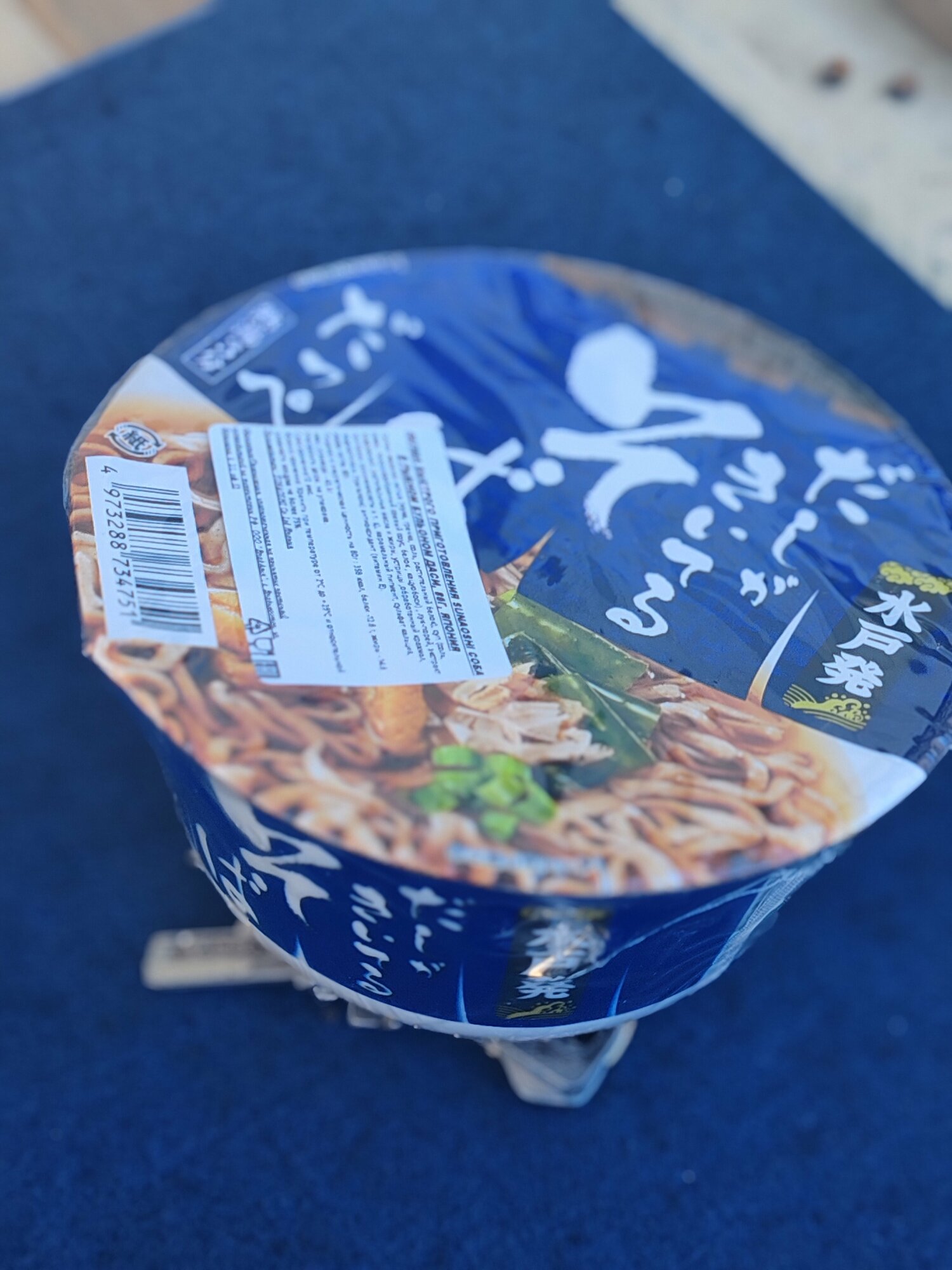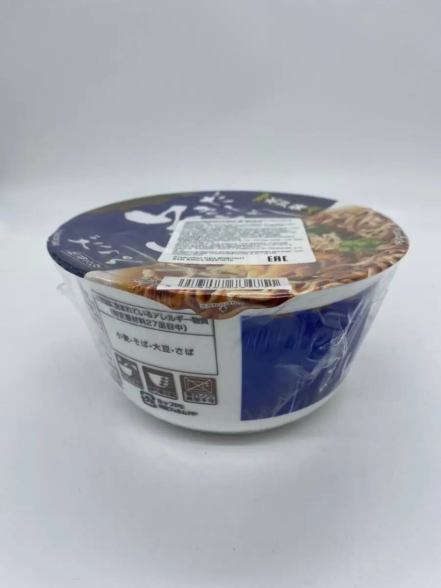 | Состав | жареная лапша (мука, гречка, соль, растительный белок), суп (соль, сахар, порошкообразный соевый соус, белок , кацуобоси) , лук-порей, экстракт водорослей, растительные масла и жиры, устрицы ,обработанный крахмал, приправы (аминокислоты и т. д), карамельный пигмент, сульфат кальция, подсластитель (трегалоза) антиоксидант (витамин Е). |