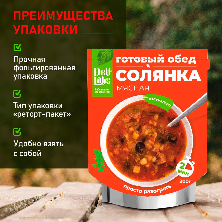 Готовое блюдо "Солянка мясная" пакет 300 г DeliLabs интересное: