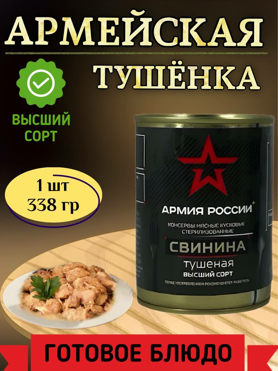 Ниже Вы можете прочитать отзывы на Свинина тушеная армейская Армия России, ознакомится с подробными характеристиками, посмотреть интересные обзоры и фотографии на Свинина тушеная армейская Армия России.