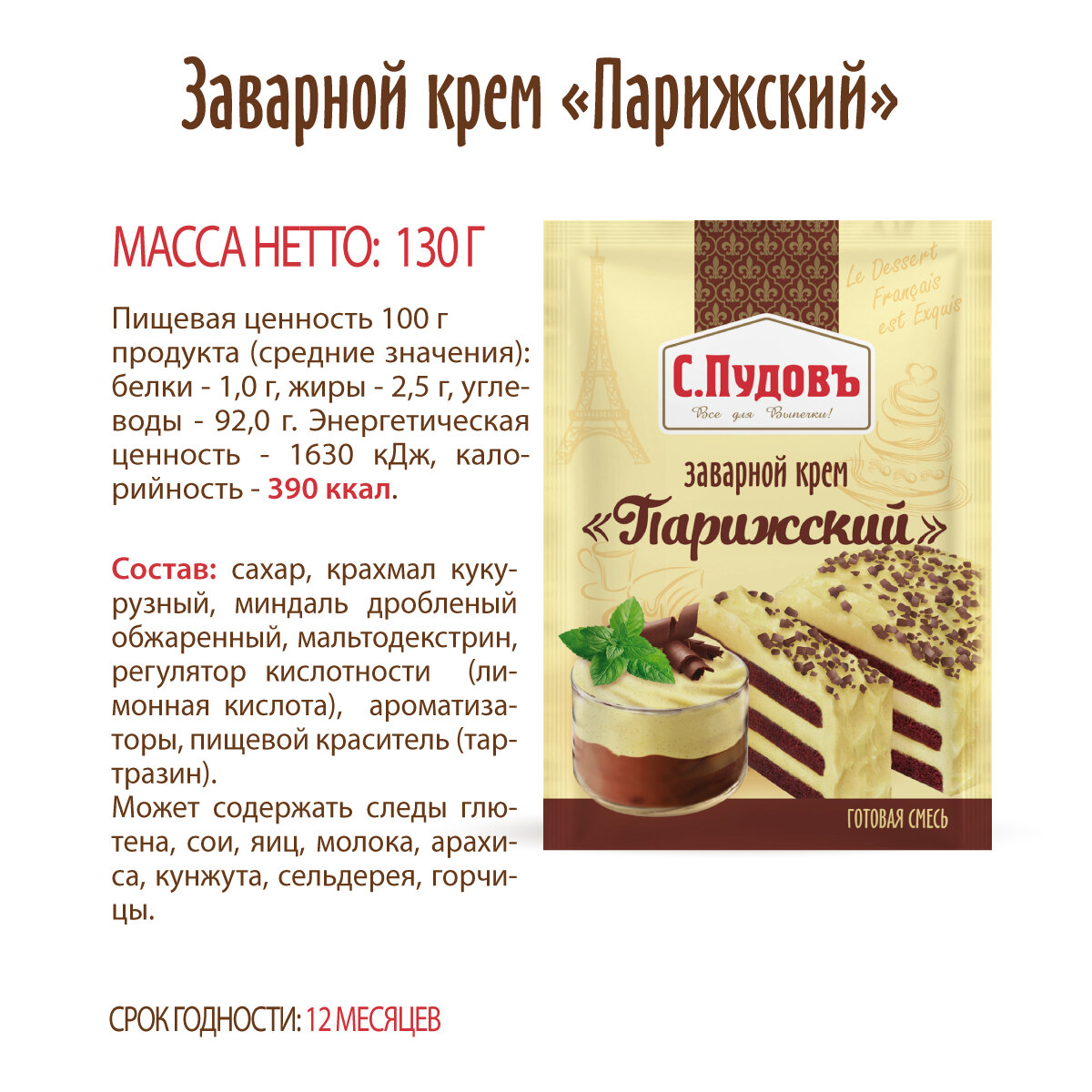 Смесь для десерта Заварной крем "Парижский" С.Пудовъ, 130 г интересное: