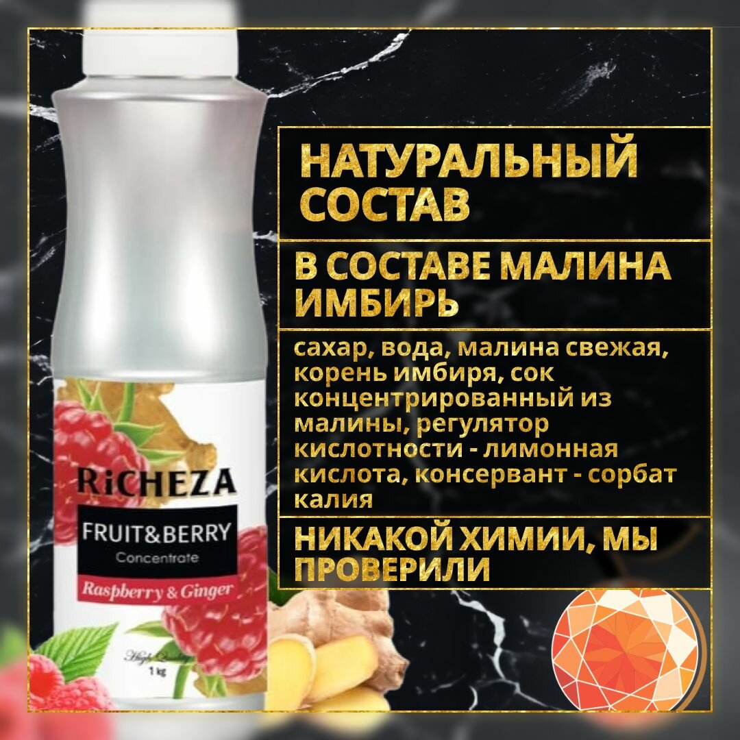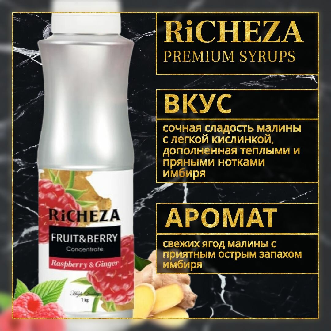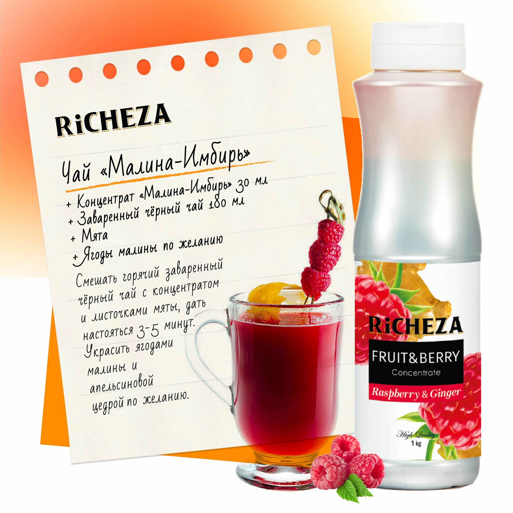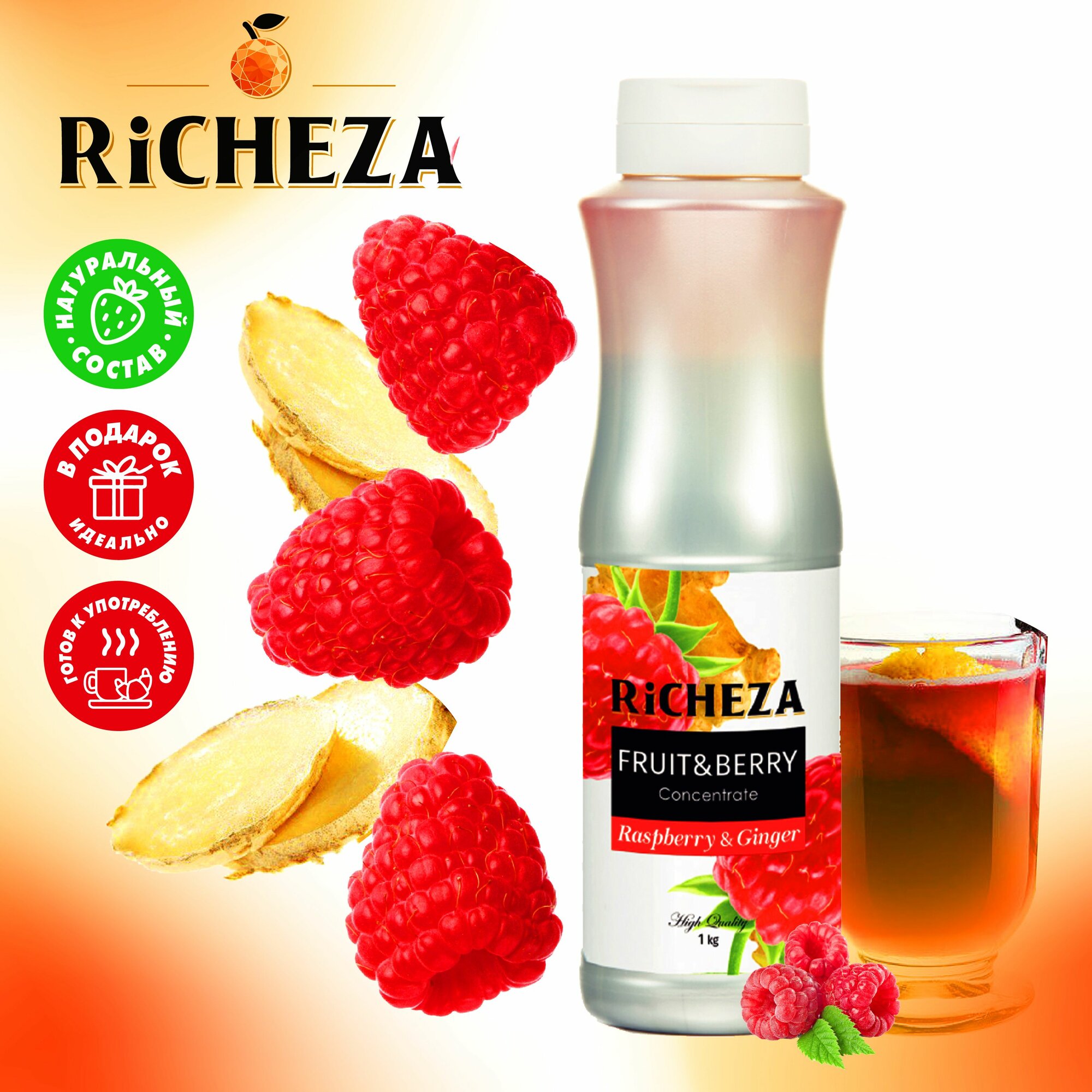 Купить Концентрат Основа для приготовления напитков Richeza Ричеза Малина-Имбирь, натуральный концентрат для чая, коктейля, смузи, лимонада, 1 кг.
