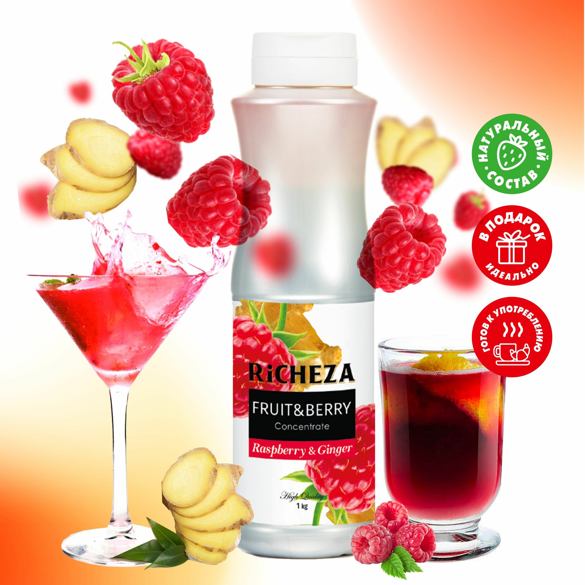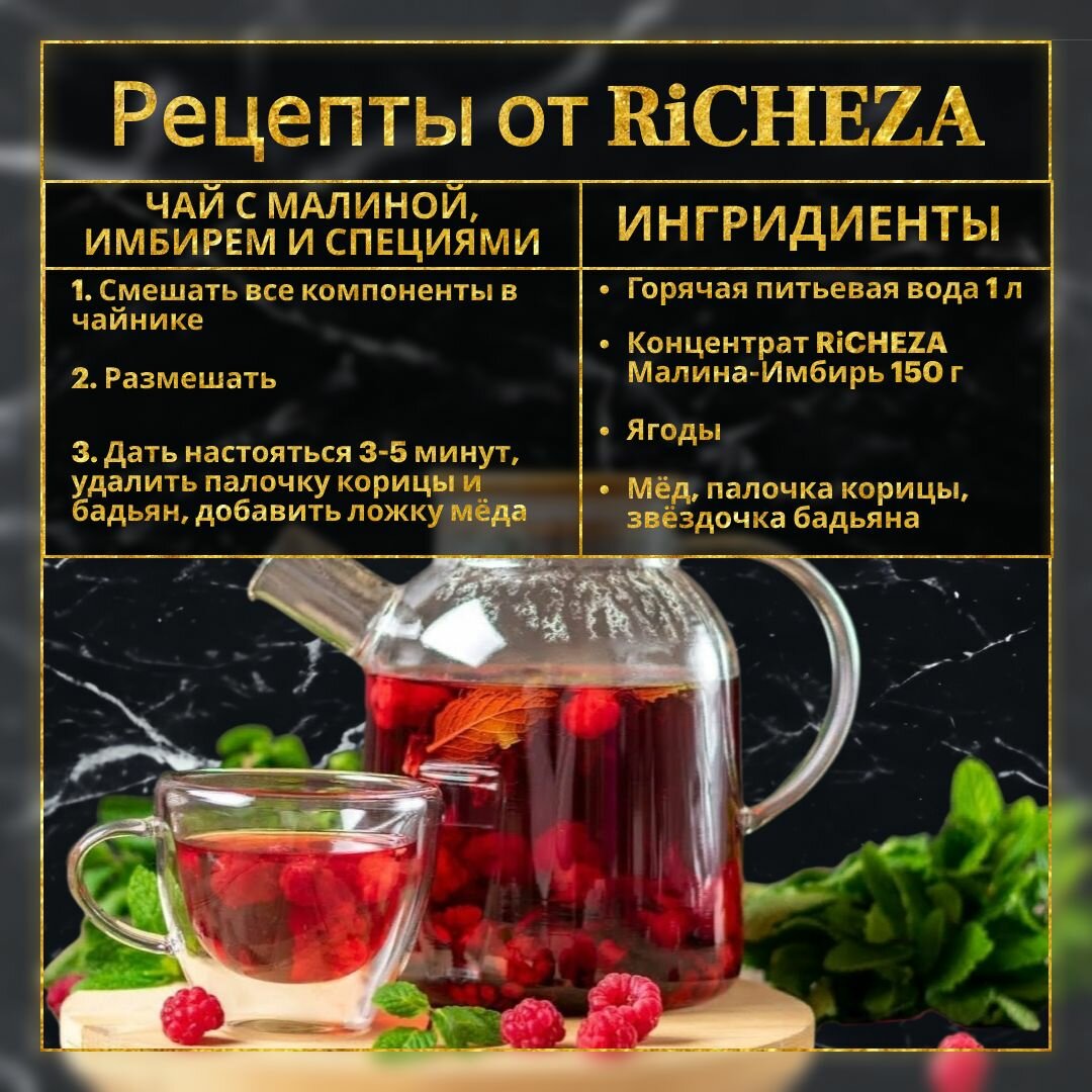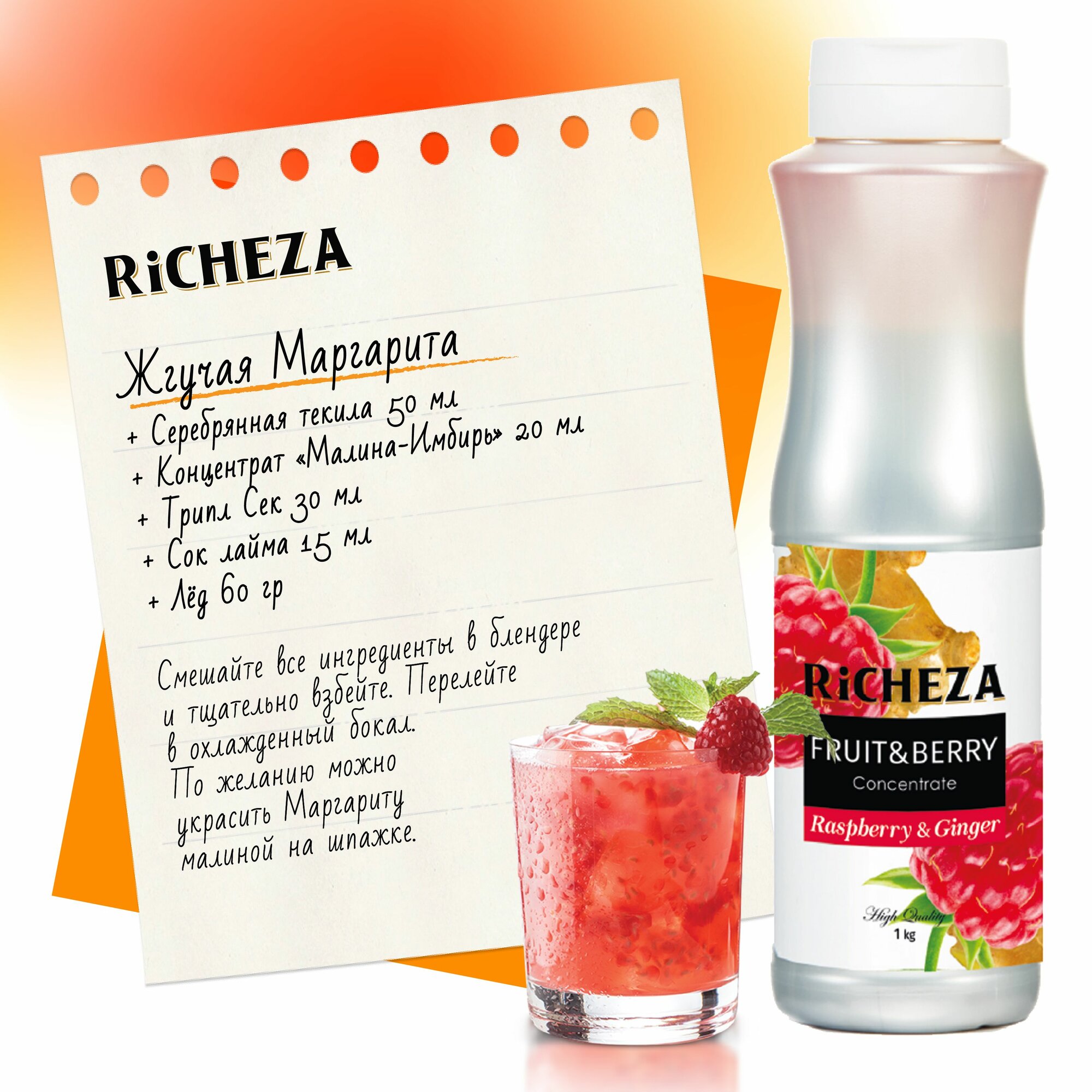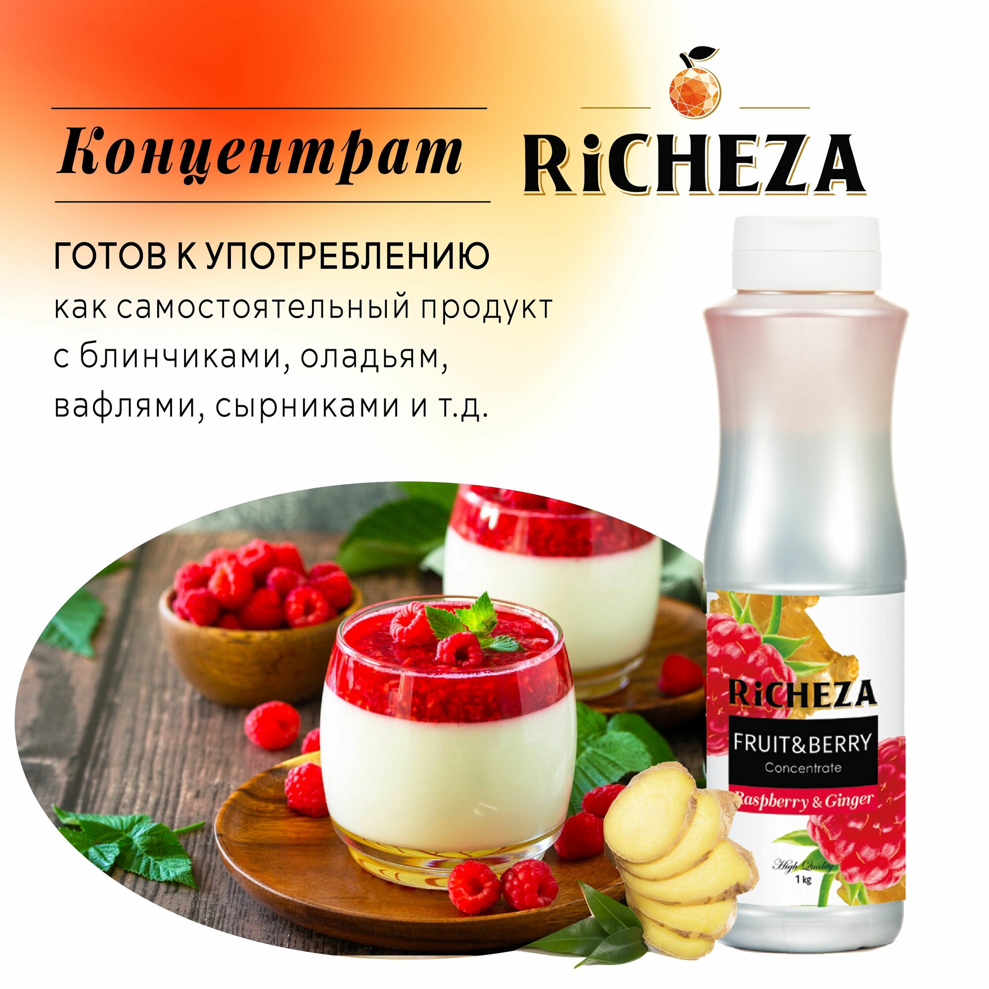 Купить Концентрат Основа для приготовления напитков Richeza Ричеза Малина-Имбирь, натуральный концентрат для чая, коктейля, смузи, лимонада, 1 кг.