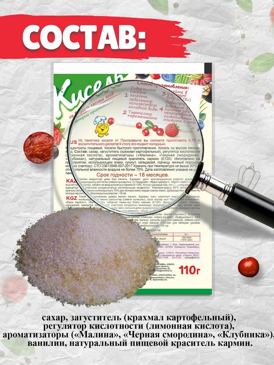 Купить Кисель "Лесная ягода" Приправыч, 110 гр, 25шт