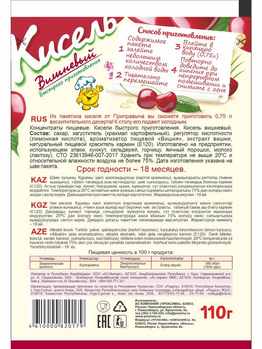 СохранитьКисель "Приправыч" Вишня 110г, 25шт интересное: