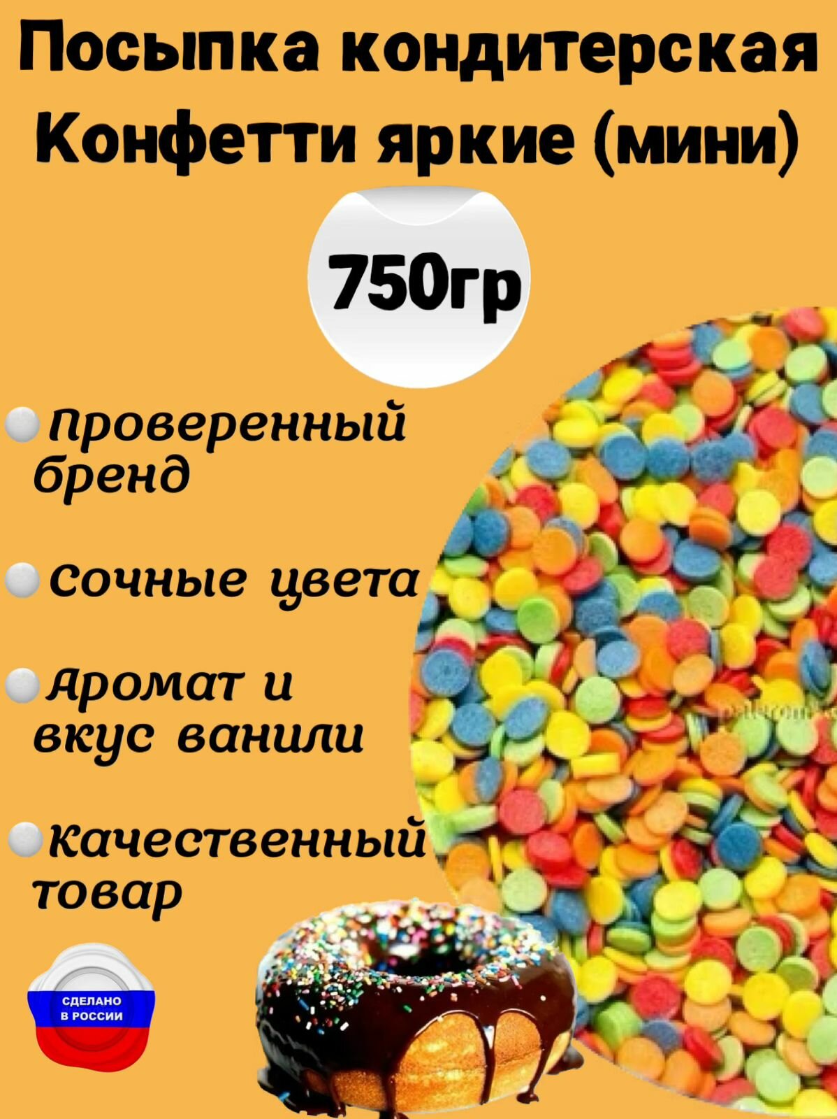 Купить Посыпка кондитерская Конфетти яркие (мини) 750гр, украшение и декор для торта, капкейков, выпечки, куличей, кексов, мороженого