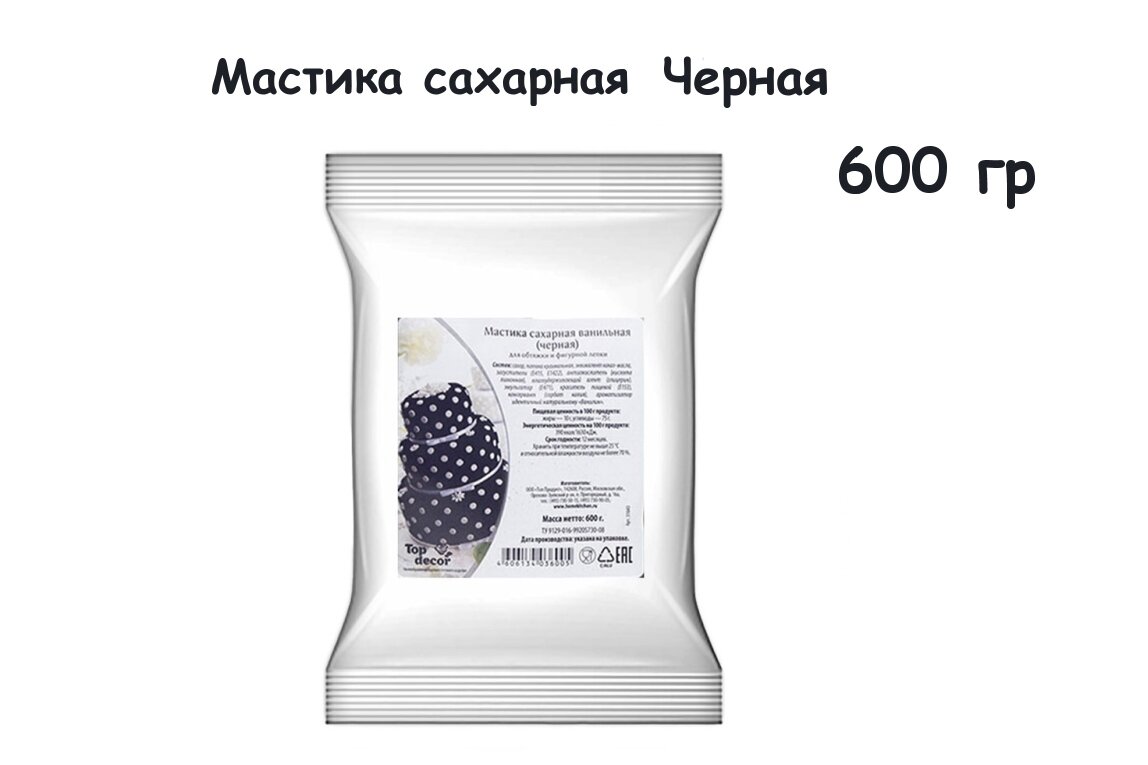 Купить Мастика сахарная ванильная Черная 600 г. Топ Декор