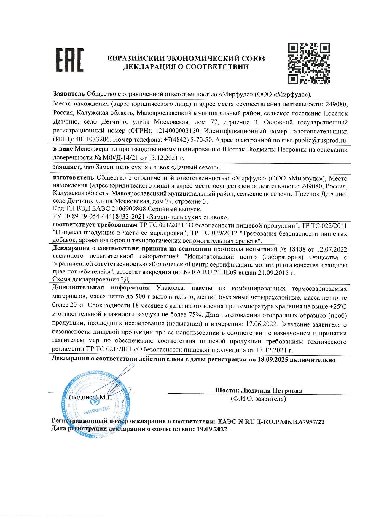 Заменитель сухих сливок 400 гр х 14 шт в уп, Дачный сезон интересное: