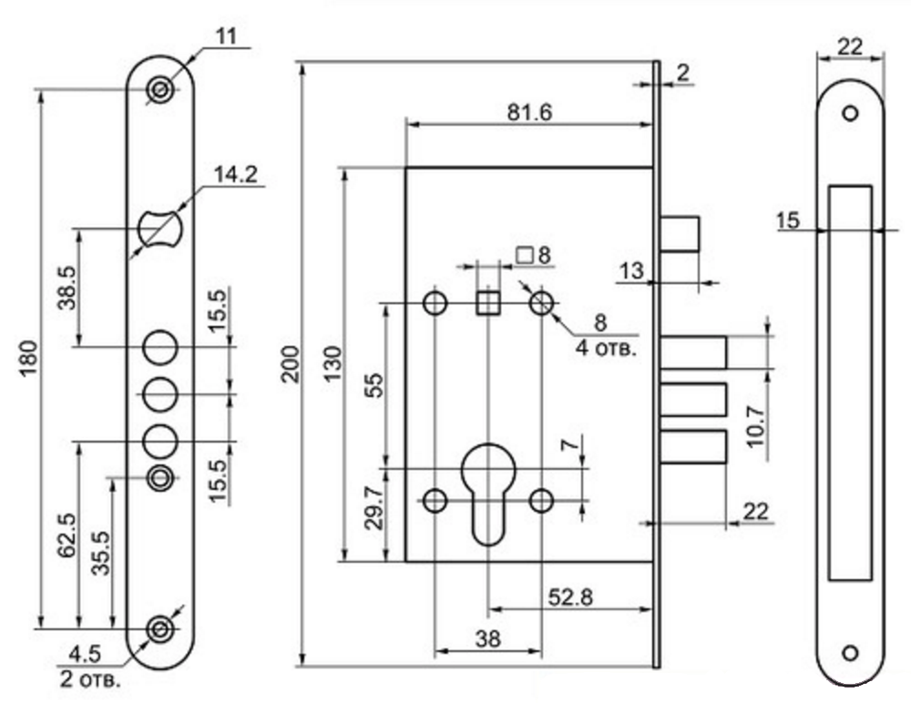 Замок на дверь врезной 78930 САМ 4-31 (без цилиндра)