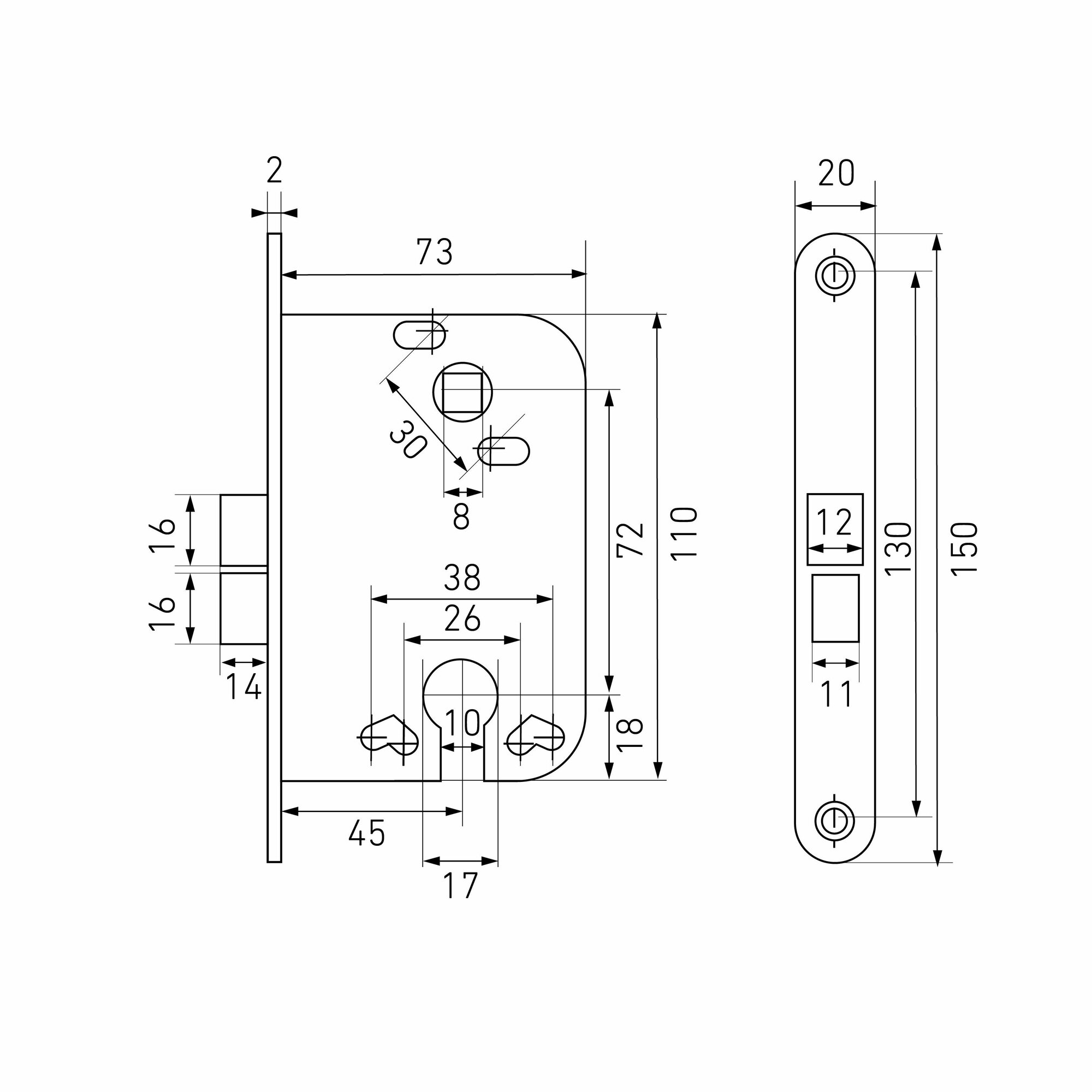 Замок врезной магнитный 25М-85 мм, чёрный Нора-М 18525