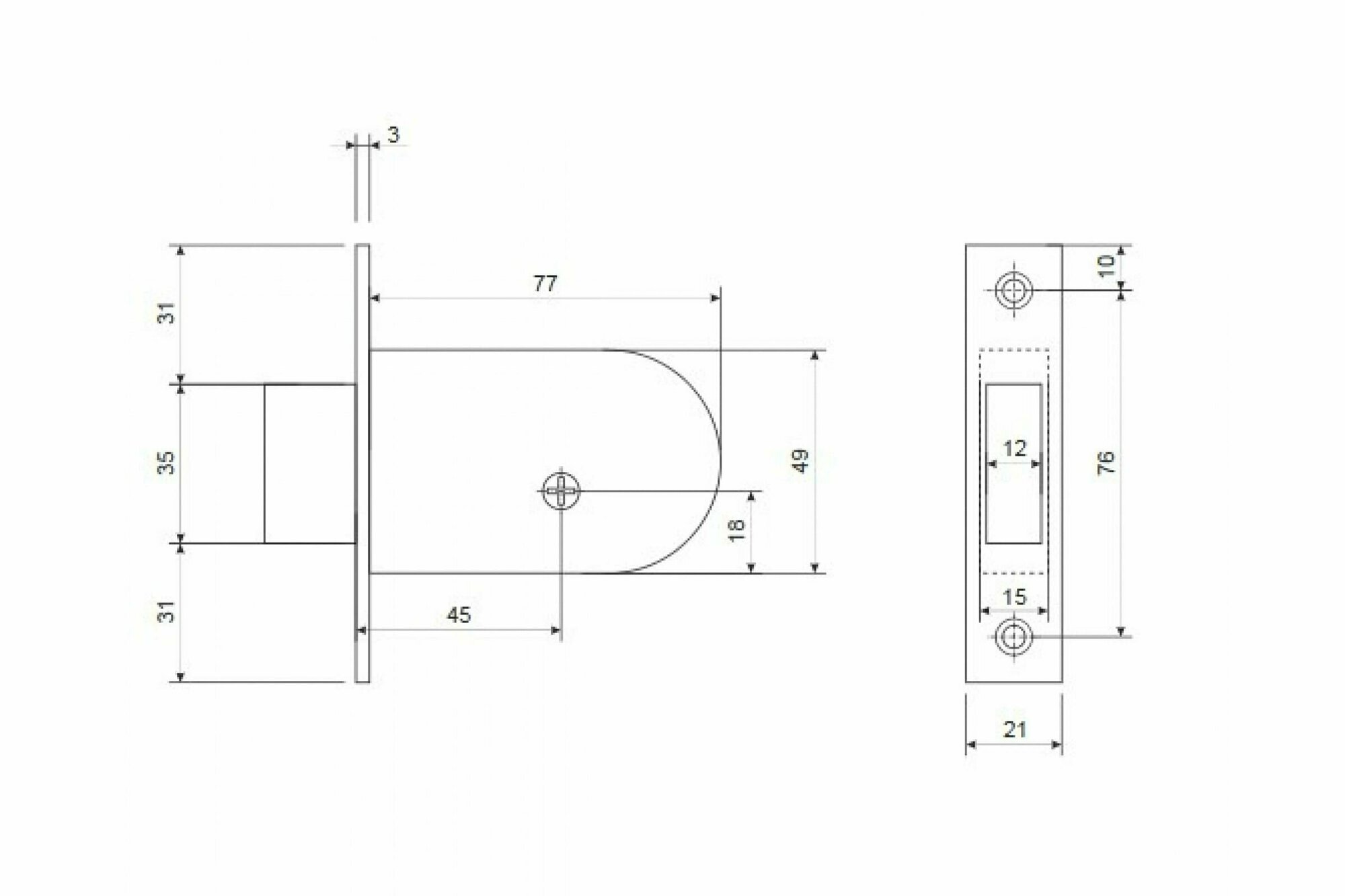 Замок врезной магнитный 25М-85 мм, чёрный Нора-М 18525
