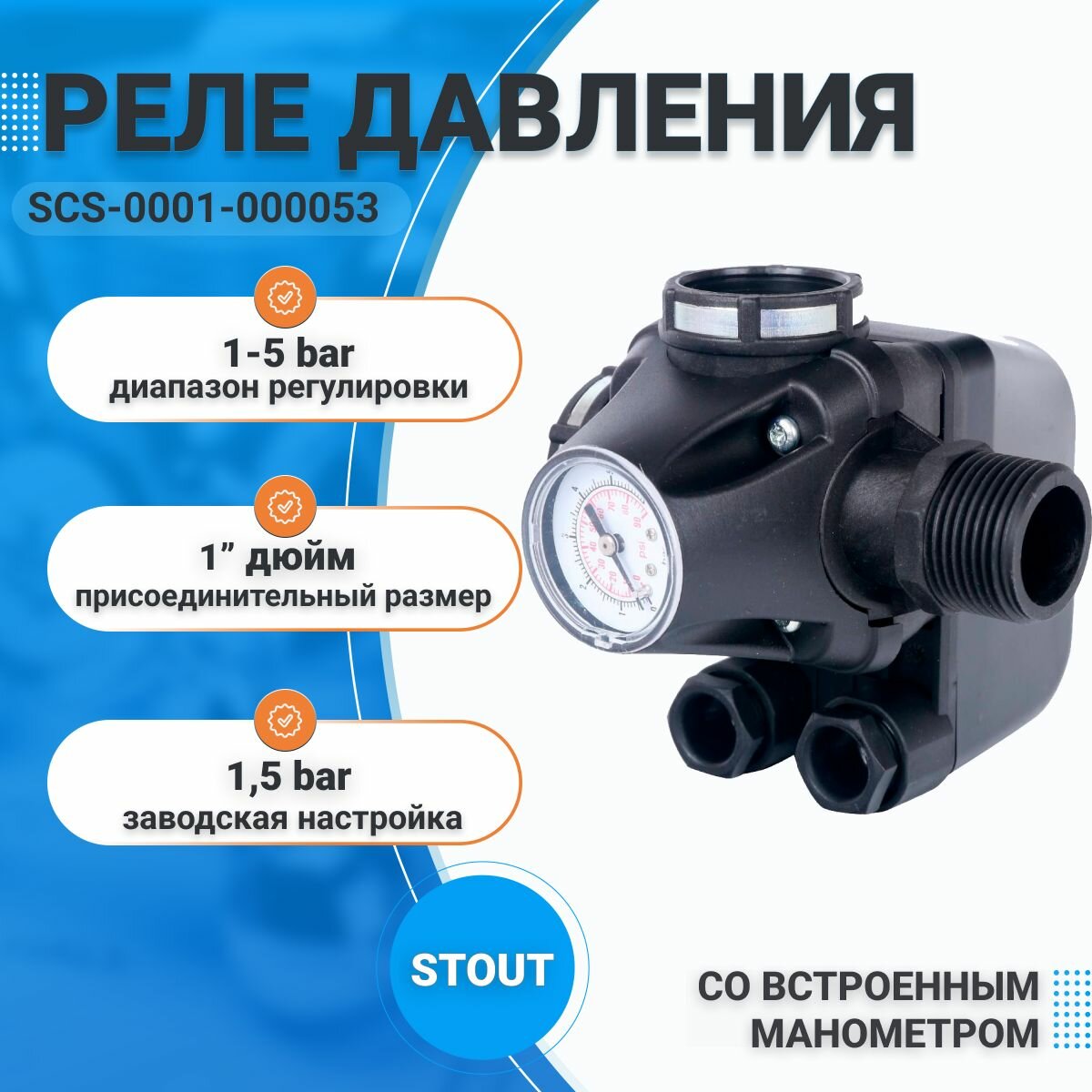 Купить Stout PM5-3W (1-5 бар) Реле давления для водоснабжения со встроенным манометром