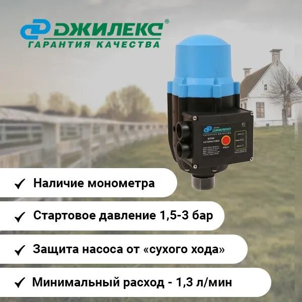 | Дополнительная информация | Блок автоматики Джилекс - позволяет автоматизировать работу электронасоса, осуществляя запуск при понижении давления (открытии кранов), или остановку при отсутствии расхода воды в системе (закрытие кранов). Особенности: - обеспечивает защиту насоса от работы без воды («сухого хода»). - наличие манометра обеспечивает визуальный контроль давления в системе водоснабжения. - возможна настройка стартовой величины включения. |