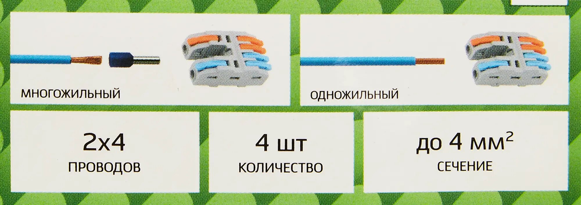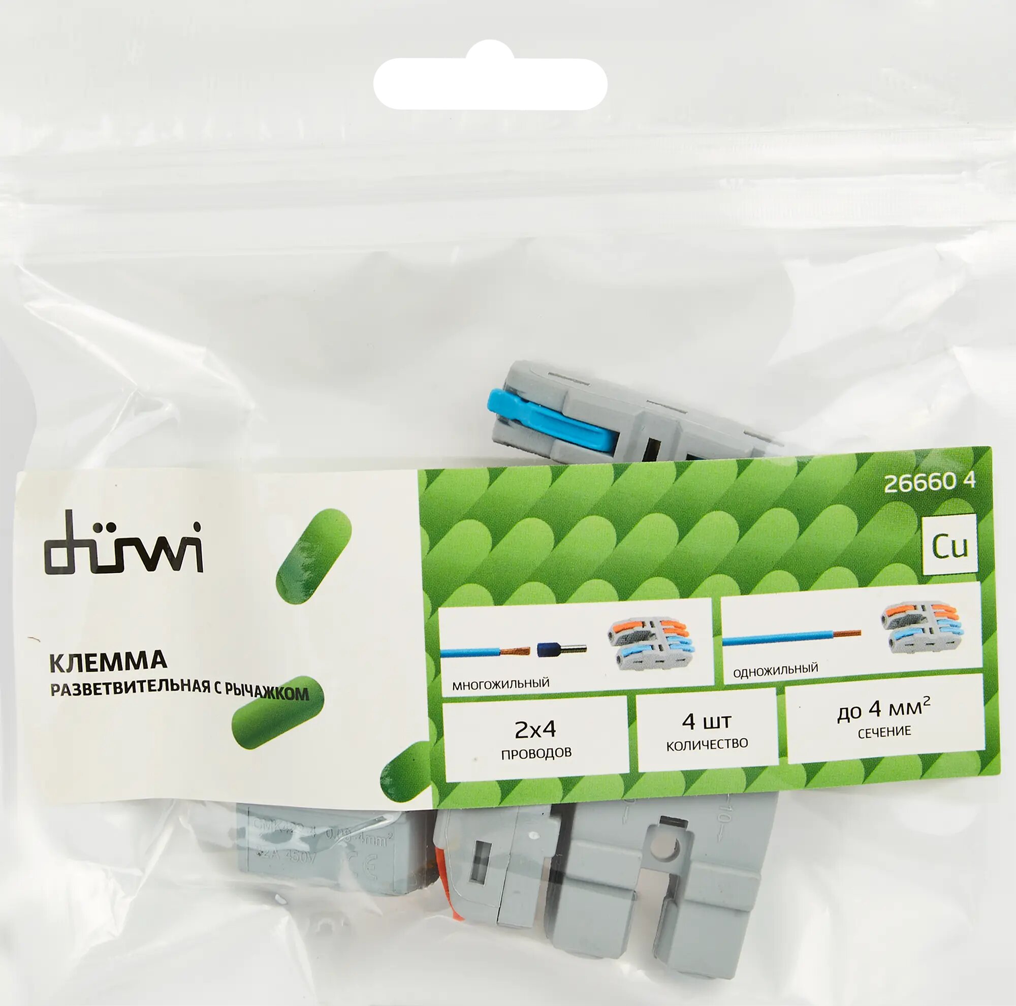 | Дополнительная информация | Клеммы разветвительные рычажковые Duwi СМК-524 PRO 2х4-проводные 4мм² серые 4шт 26660 4 |