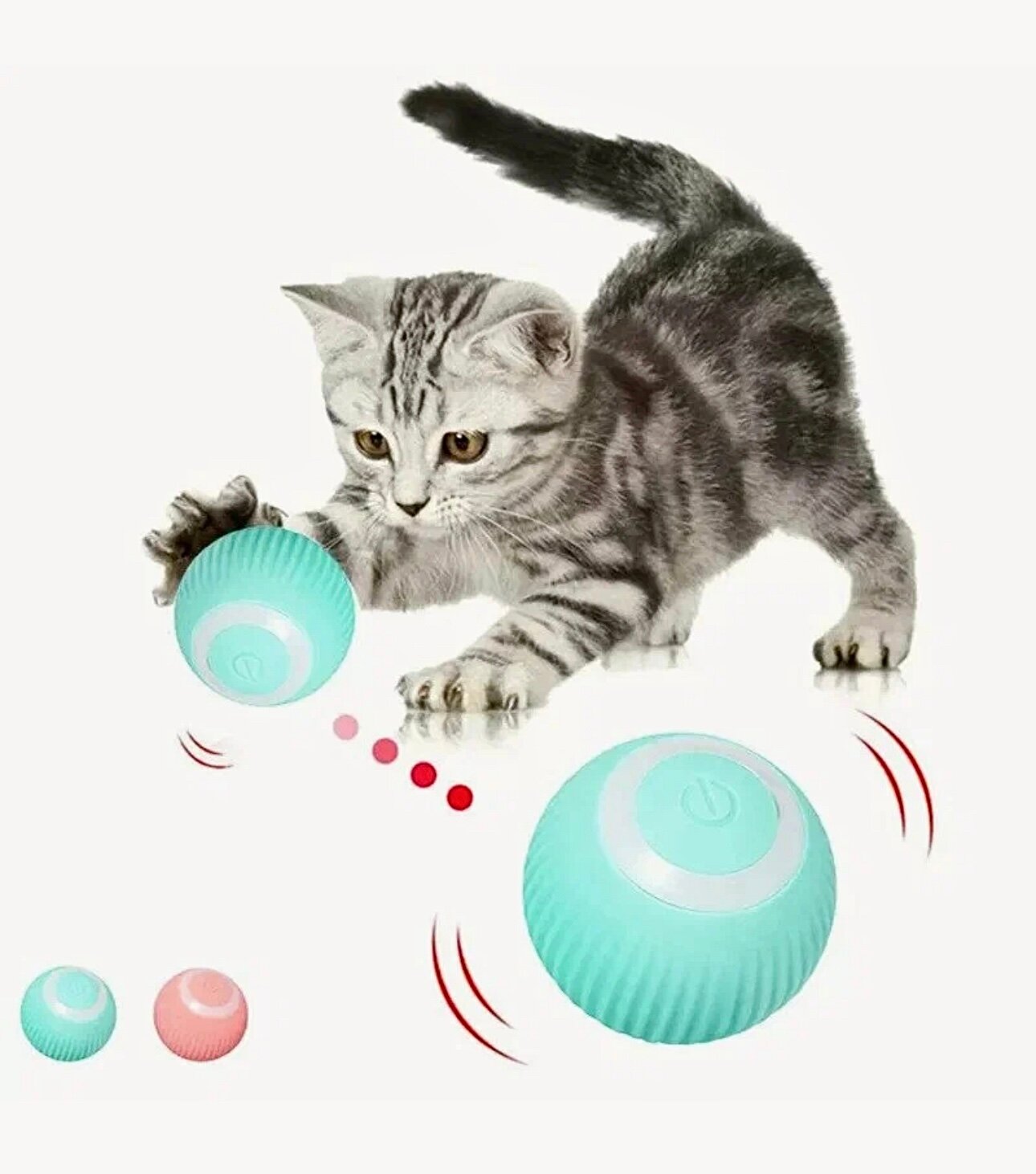 Игрушка для кошек, интерактивный мяч, игрушка дразнилка для котов, 2 режима, зарядка USB в комплекте , голубой