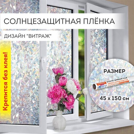 Пленка на окно самоклеящаяся статическая Без Клея, солнцезащитная, 45х150 см, Витраж, Daswerk, 607968