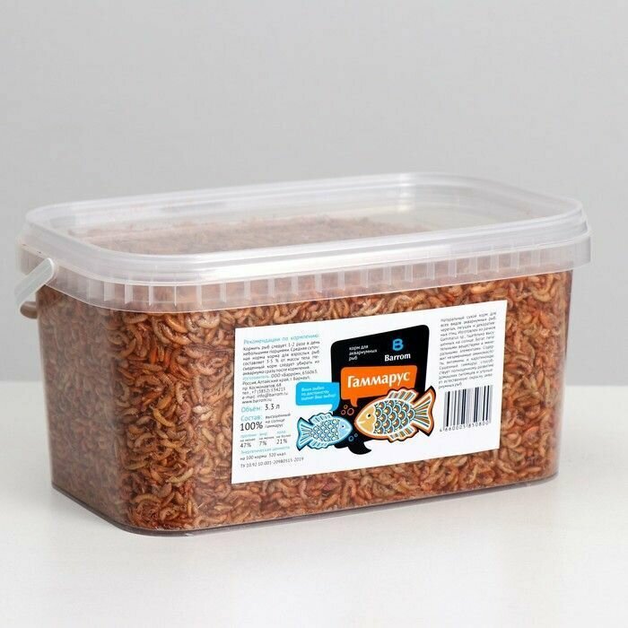 Barrom Гаммарус сушеный для рыб, черепах и улиток 3,3 л, тушка
