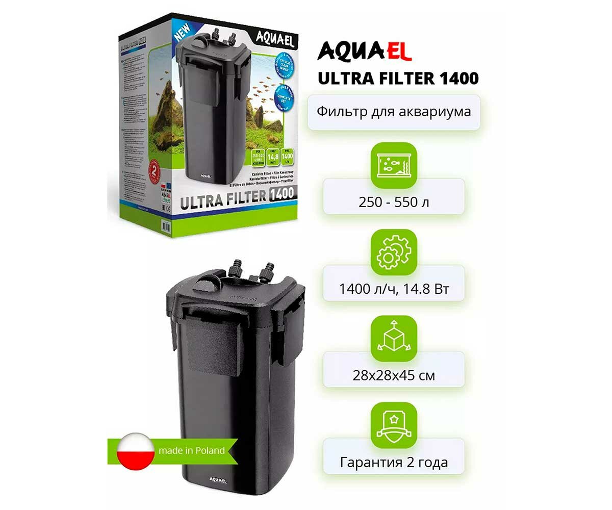 СохранитьВнешний фильтр AQUAEL ULTRA FILTER 1400 для аквариума 250 - 500 л (1400 л/ч, 14.8 Вт) интересное: