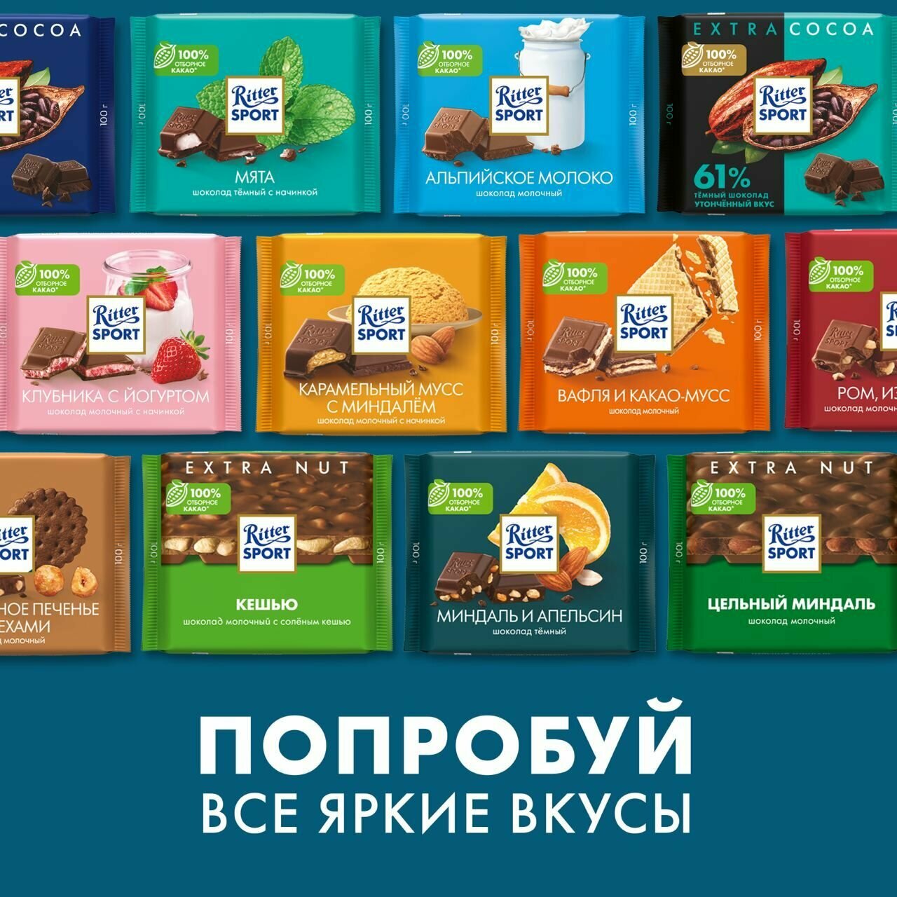 Шоколад темный Ritter Sport Миндаль и Апельсин, 100 г, 12 штук интересное: