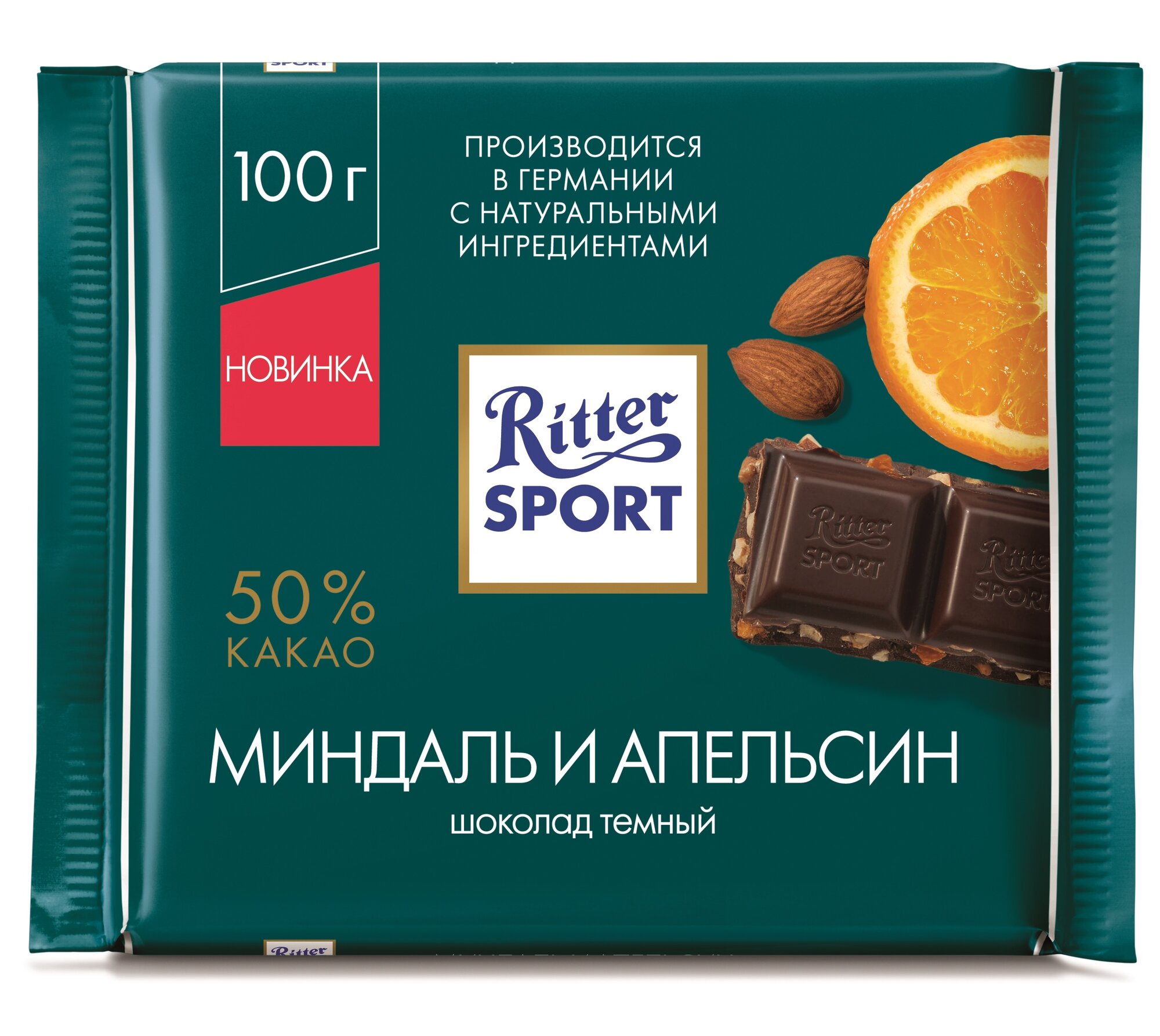 Шоколад темный RITTER SPORT Миндаль и апельсин, 100г интересное:
