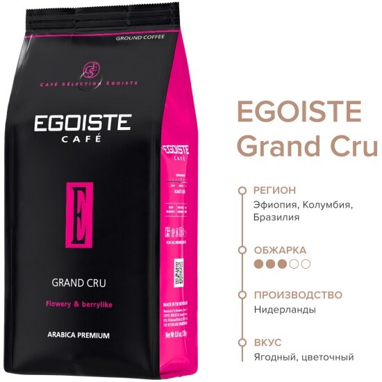 Ниже Вы можете прочитать отзывы на Кофе молотый EGOISTE Egoiste Grand Cru 250 г, ознакомится с подробными характеристиками, посмотреть интересные обзоры и фотографии на Кофе молотый EGOISTE Egoiste Grand Cru 250 г.