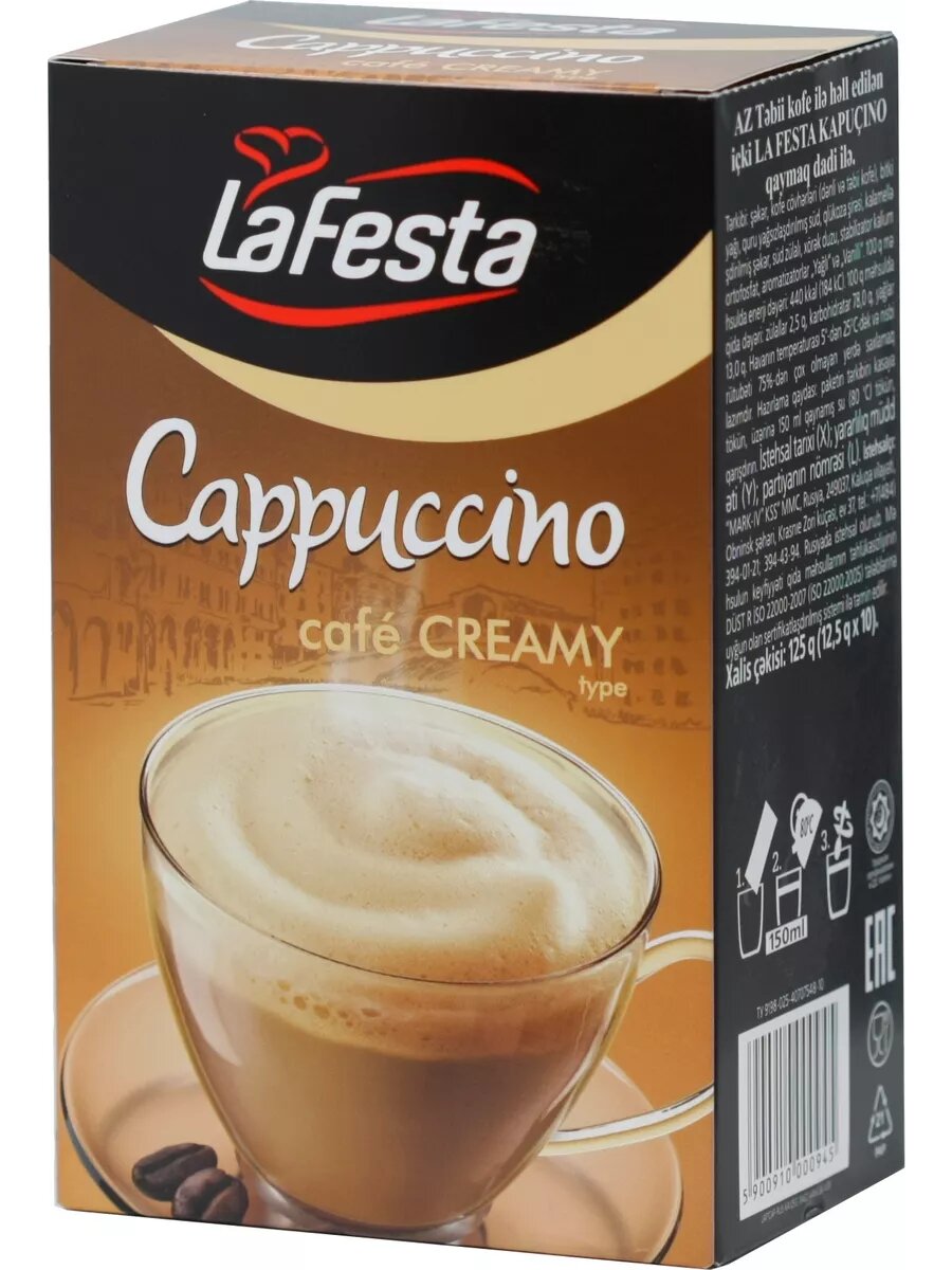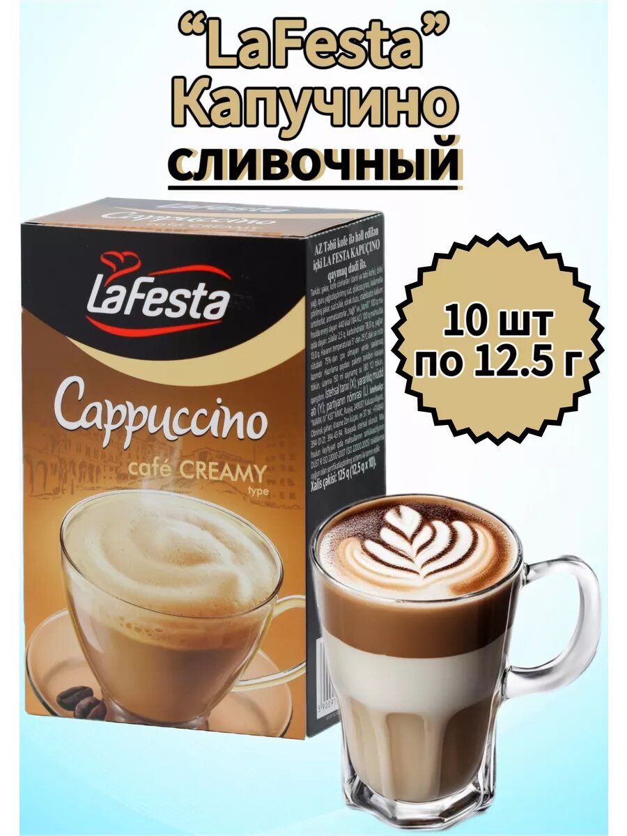 Капучино La Festa со вкусом сливок, напиток растворимый с натуральным кофе, 125 г (12,5 г х 10 шт)