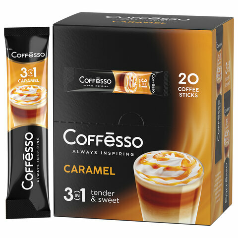 Купить Кофейный напиток Coffesso "Кофе растворимый Caramel 3 в 1" 20 стиков