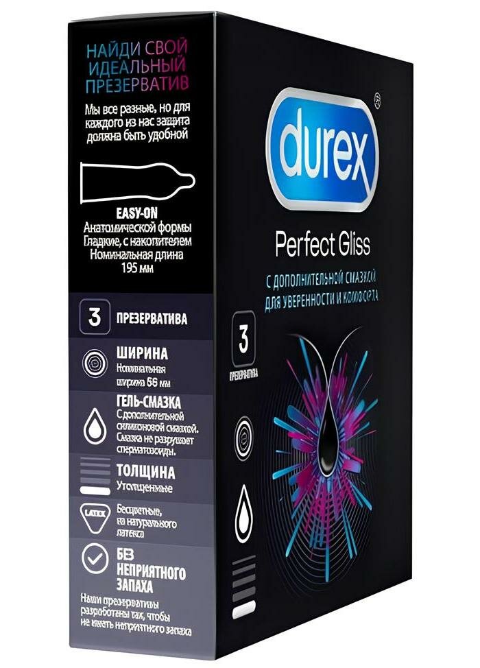 Купить Презервативы из натурального латекса Durex Perfect Gliss, утолщенные со смазкой, 3 шт
