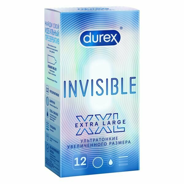 Презервативы Durex Invisible XXL Extra Large, 12 шт.