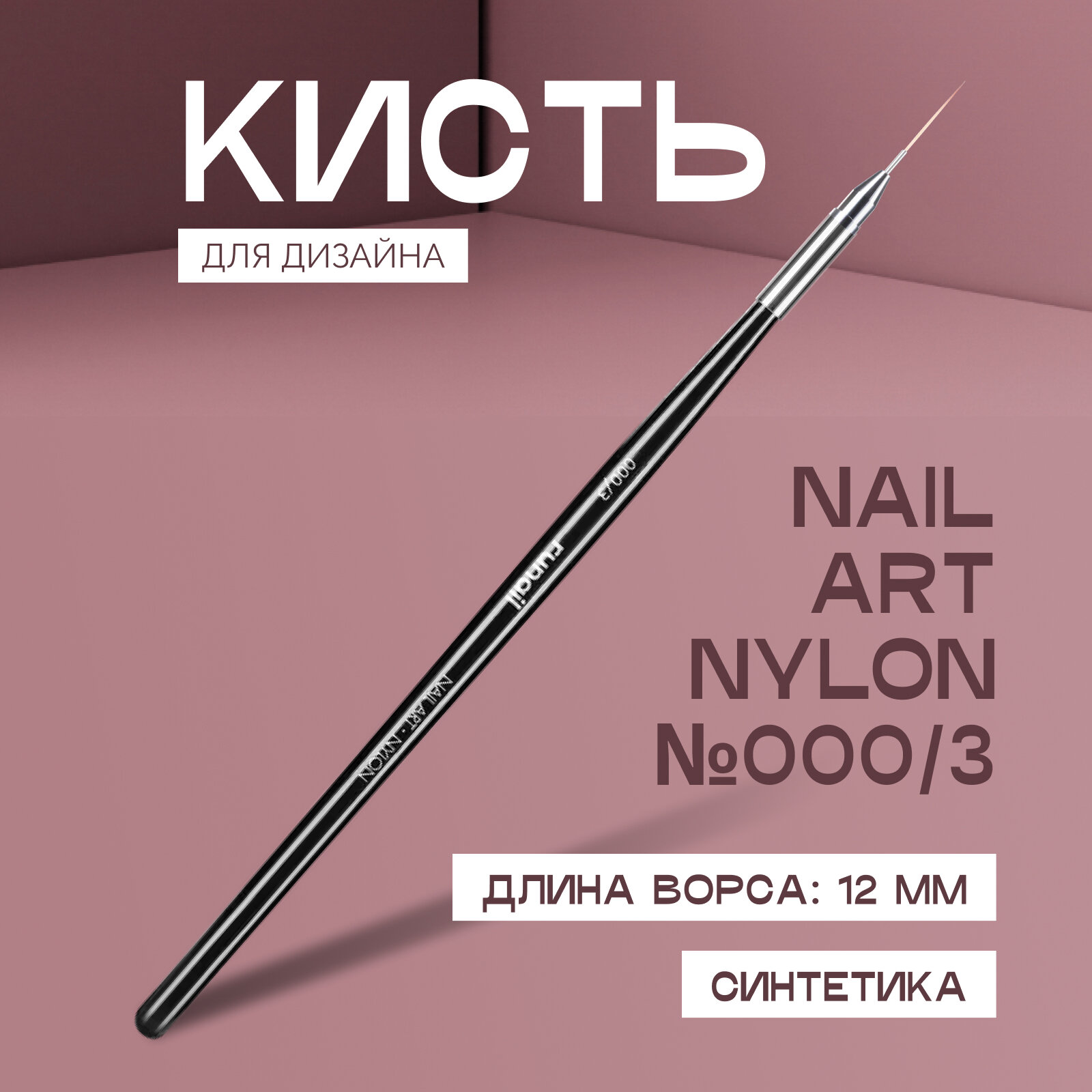 RuNail, кисть для дизайна и "под кутикулу" Nail Art Nylon, 12 мм №000/3
