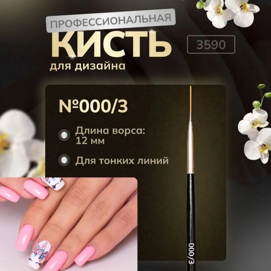 Кисть для маникюра RuNail Professional Nail Art Nylon №000/3 синтетическая тонкая для френча, 12 мм интересное: